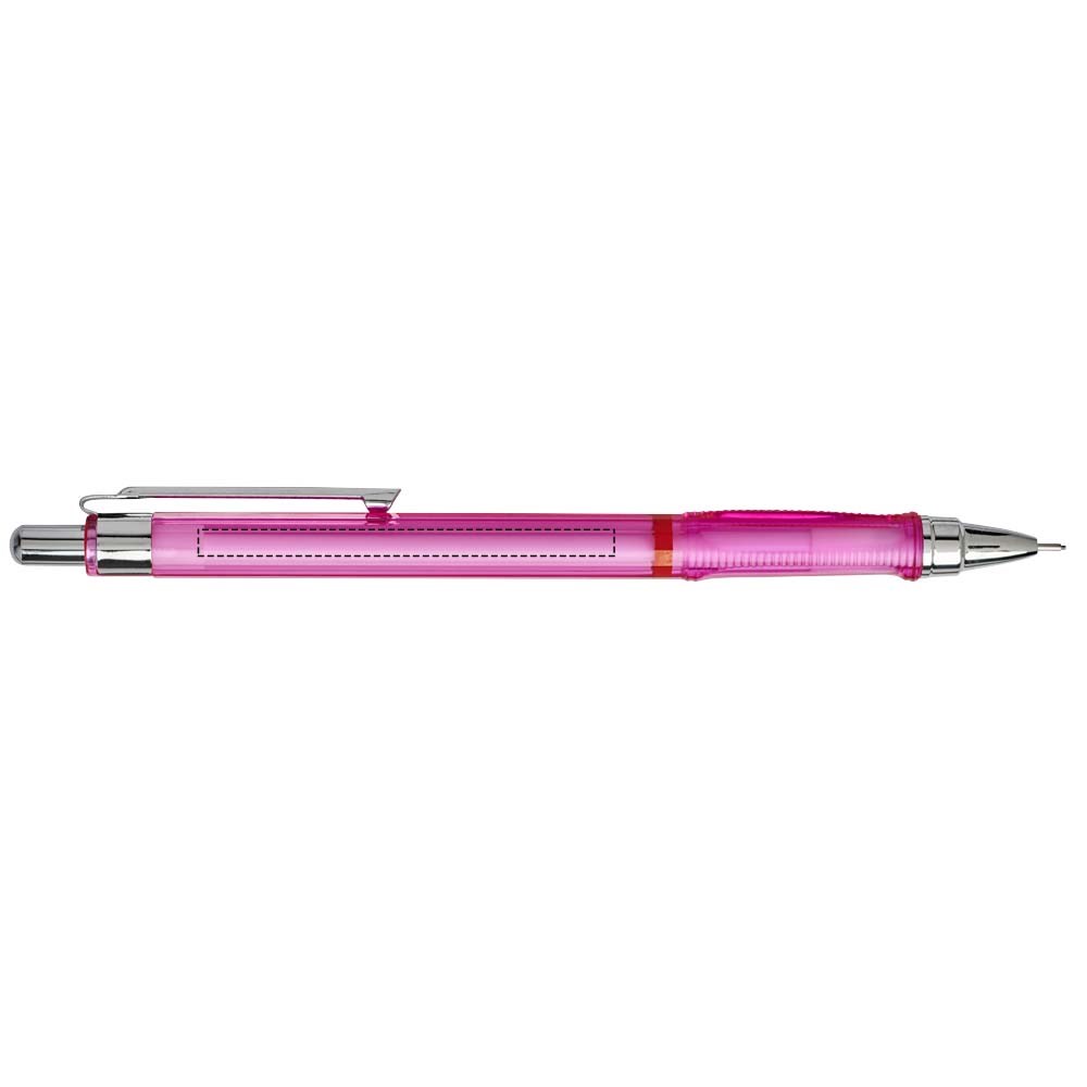 Vulpotlood met klikmechanisme voor dynamisch schrijven en schetsen. Voorzien van een metalen mechanisme met intrekbare stiftjes. Driehoekige greep voor ontspannen handligging. Intrekbare punt met stiftjes van 2B-hoogpolymeer. Stiftmaat: 0,7mm.
