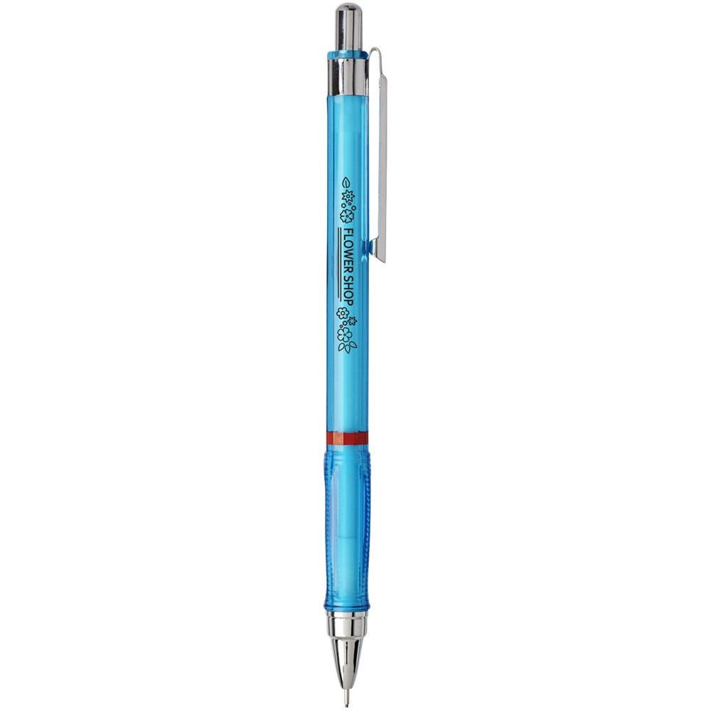 Vulpotlood met klikmechanisme voor dynamisch schrijven en schetsen. Voorzien van een metalen mechanisme met intrekbare stiftjes. Driehoekige greep voor ontspannen handligging. Intrekbare punt met stiftjes van 2B-hoogpolymeer. Stiftmaat: 0,7mm.