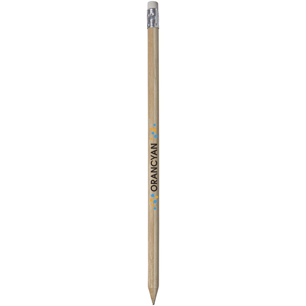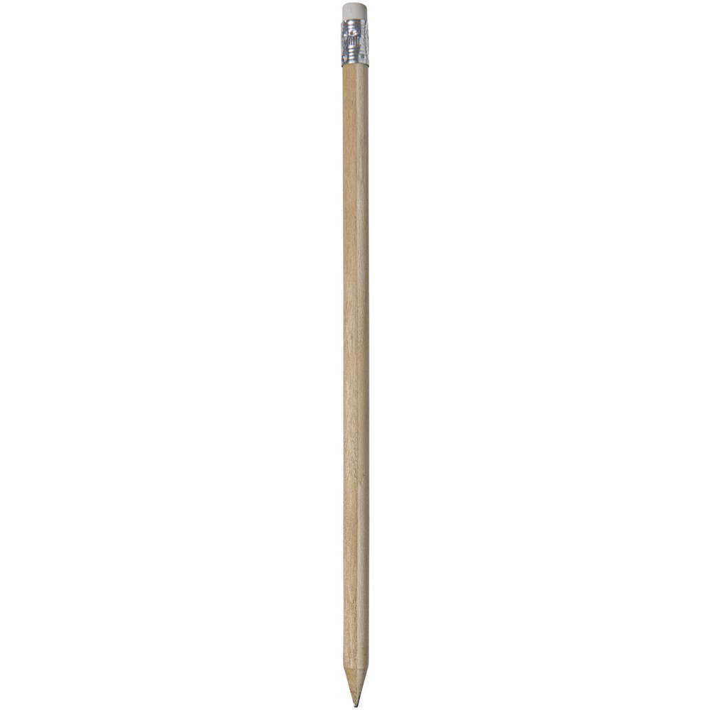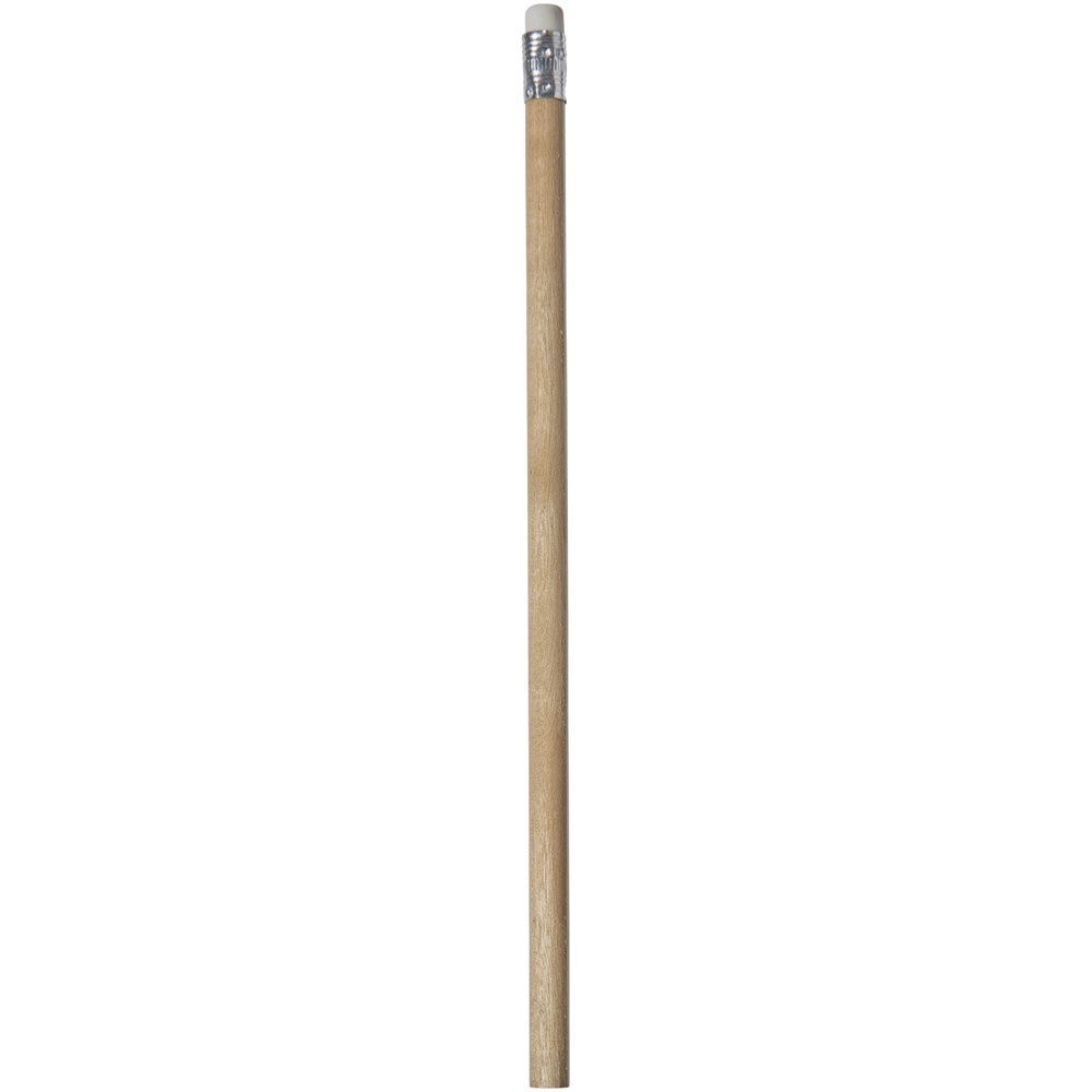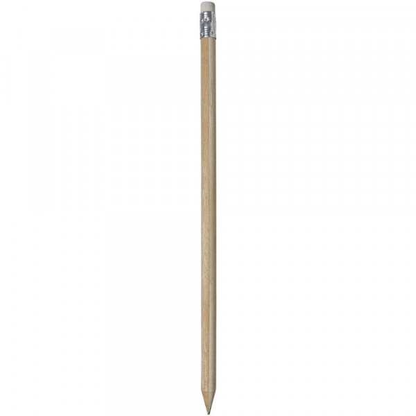 Houten potlood met een natuurlijke uitstraling and gekleurde gum. Ongeslepen.