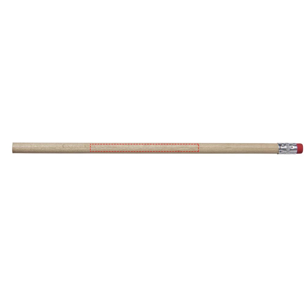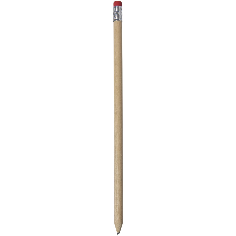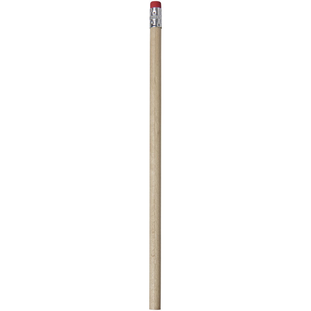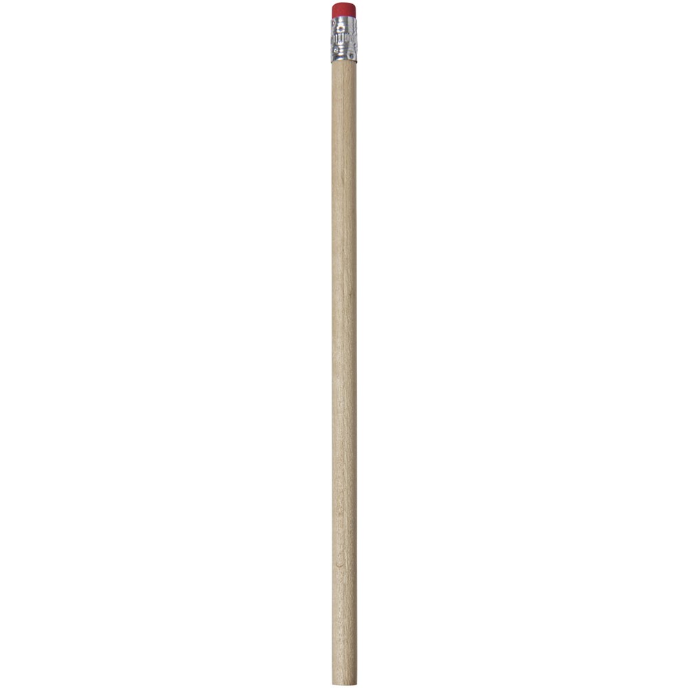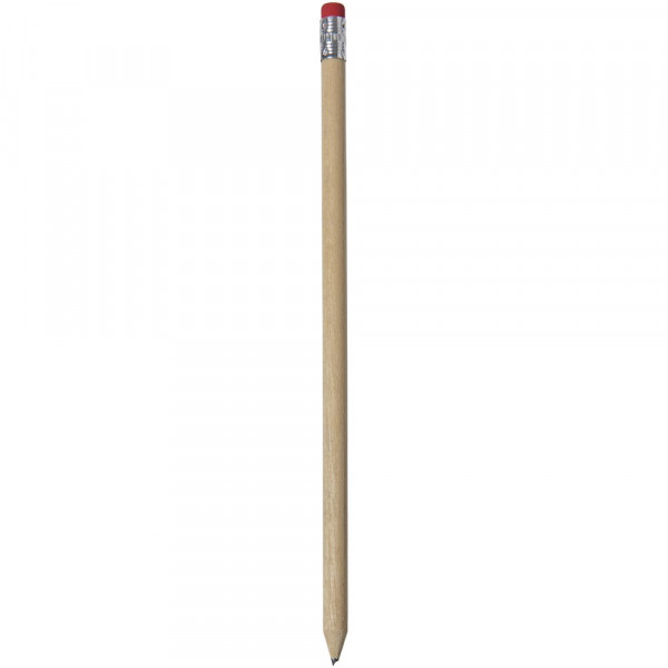 Houten potlood met een natuurlijke uitstraling and gekleurde gum. Ongeslepen.