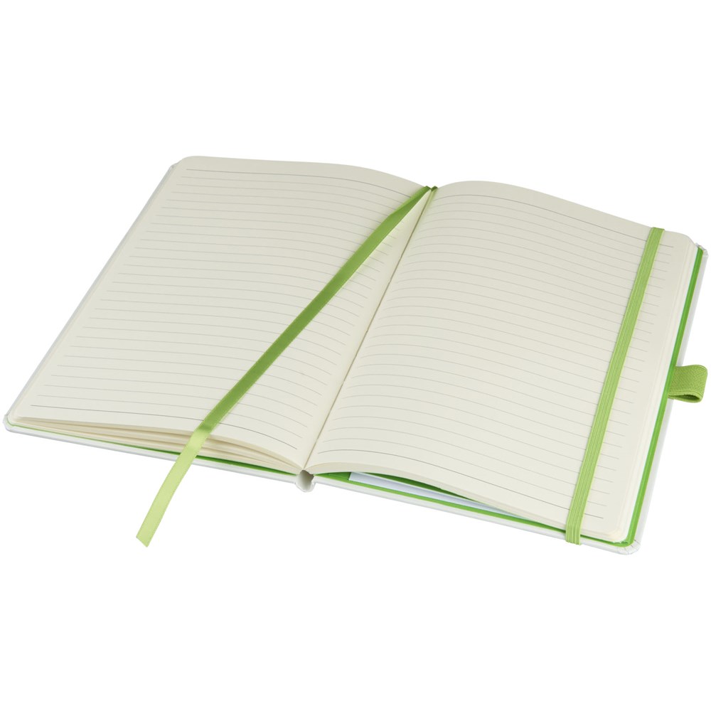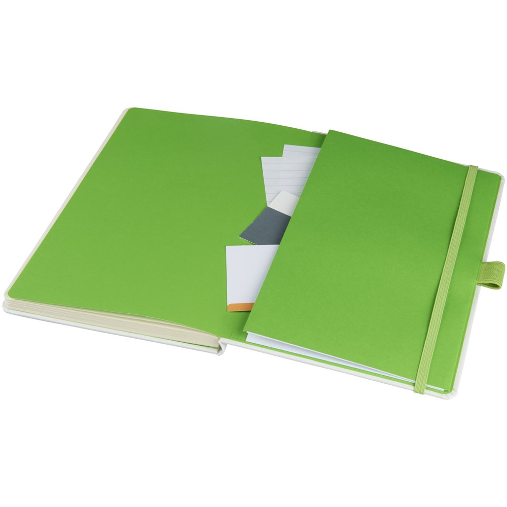 Hardcover A5 formaat notitieboekje voor de creatieve professional voor het maken van notities of het maken van schetsen. De verschillende kleurige papier met bijpassende gekleurde elastieke sluiting en lintmarkering geven het notitieboek een extra frisse uitstraling. Overige kenmerken zijn onder meer 40 pagina's van 80 gram gelinieerd papier en 40 pagina's van 80 gram blanco papier. Een opbergvak om losse notities en papieren bij elkaar te houden. Verpakt in een witte geschenketui.