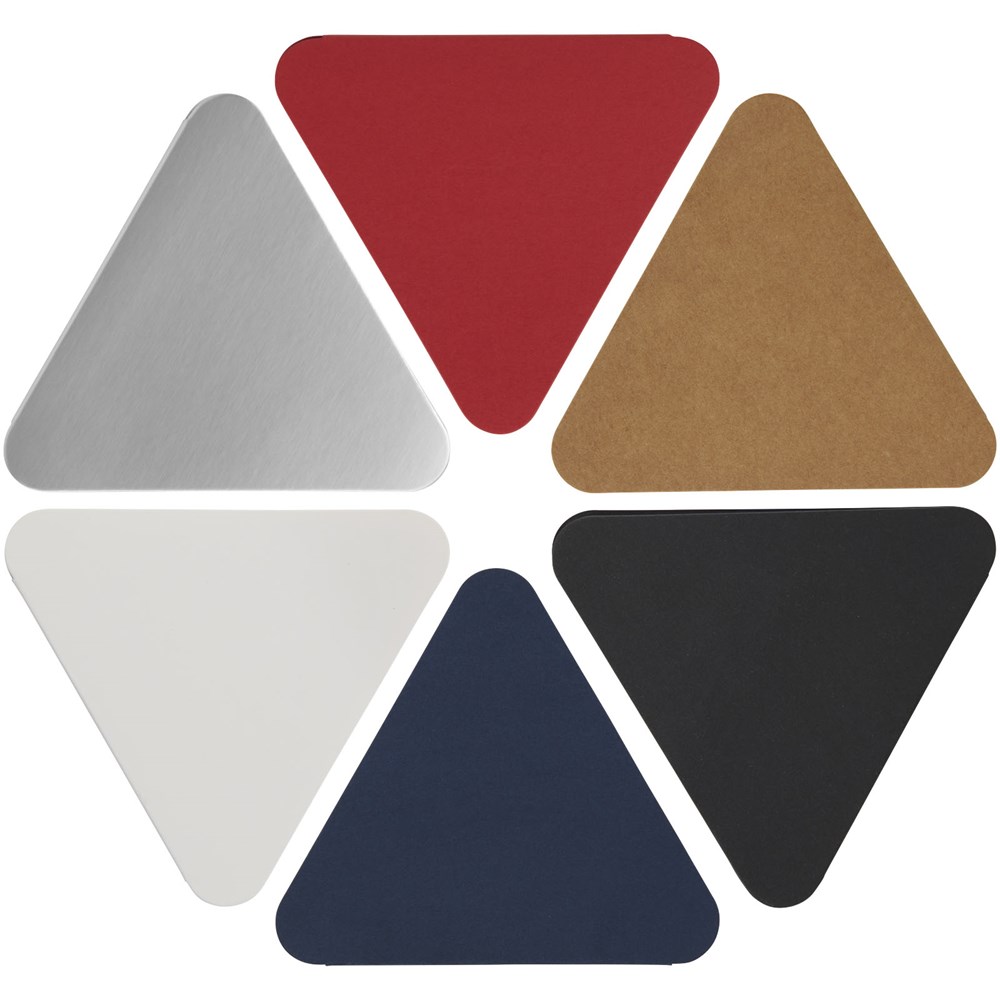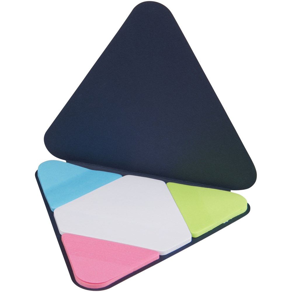 Blok driehoekige memobriefjes met 4 stapeltjes gekleurde plakblaadjes (3 gekleurd, 1 wit).