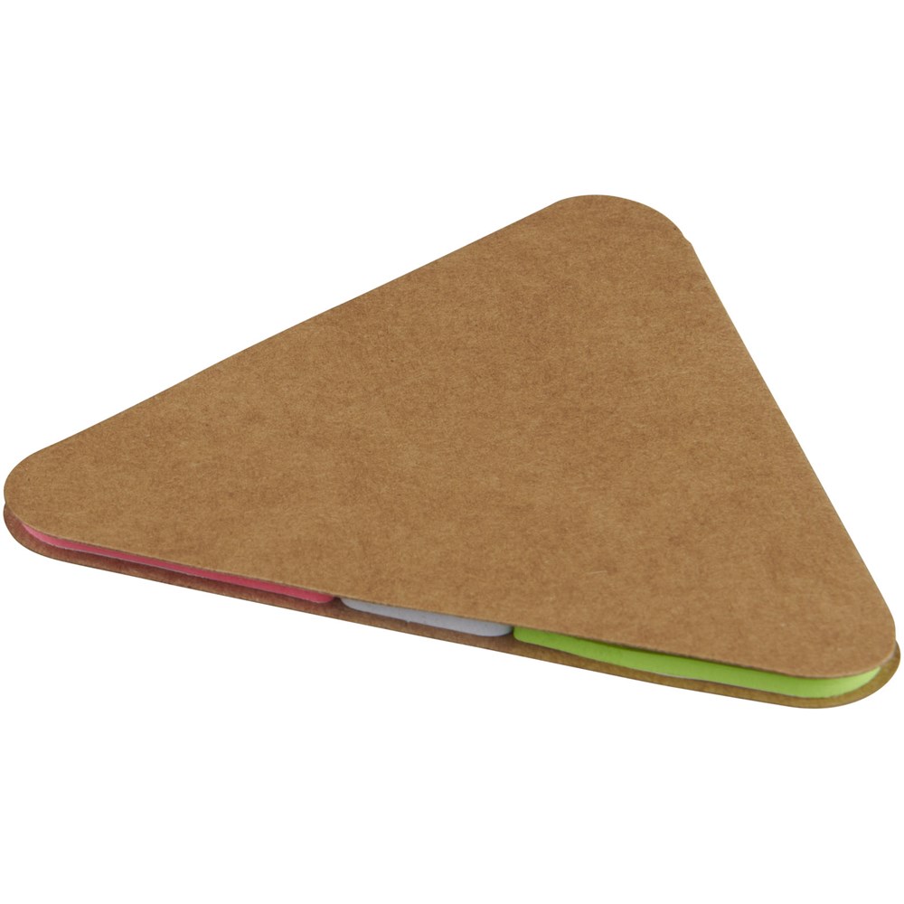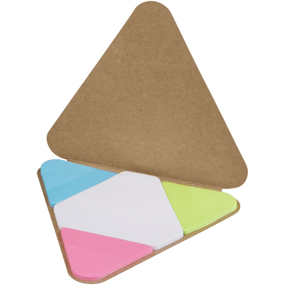 Blok driehoekige memobriefjes met 4 stapeltjes gekleurde plakblaadjes (3 gekleurd, 1 wit).