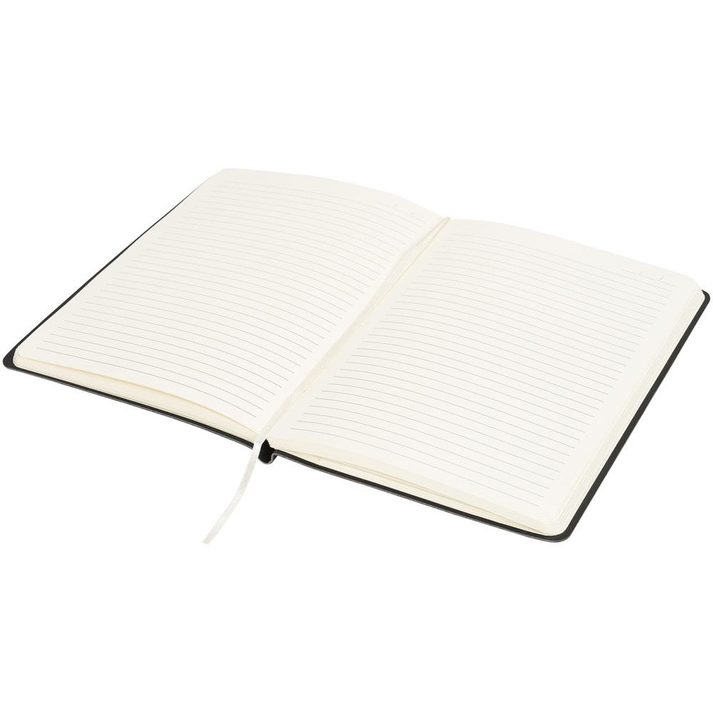 Notitieboek met zachte, flexibele omslag verkrijgbaar in vijf kleuren. Bevat een handig vakje aan de binnenkant van de achterste omslag. Bevat 80 bladen (100g/m2) crèmekleurig gelinieerd papier.
