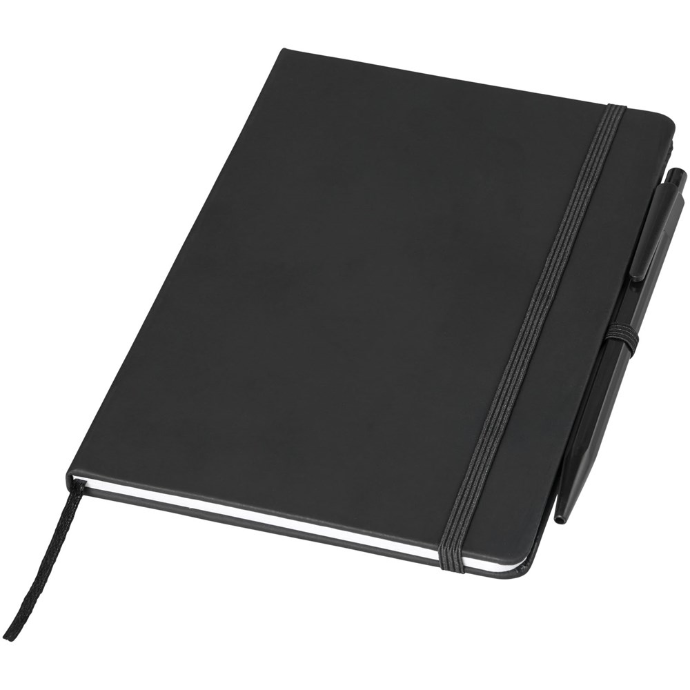 Hardcover notitieboek inclusief pen met bijpassende elastische sluiting in kleur, lint als...meer
