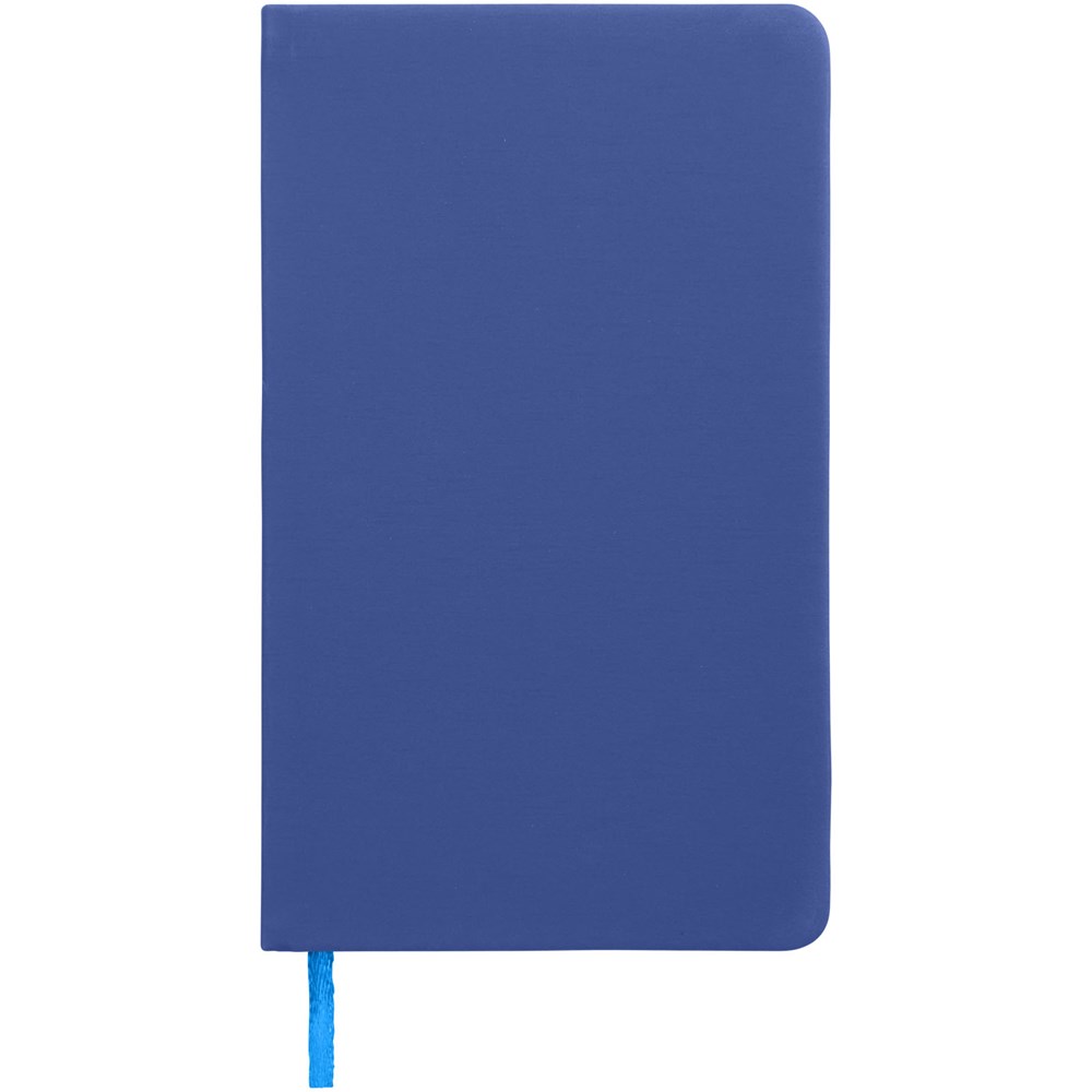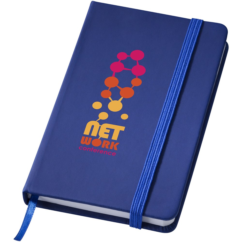 A7 formaat notitieboek met bijpassende gekleurde elastieksluiting en paginalint. 60 pagina's van 60 gram gelinieerd papier.