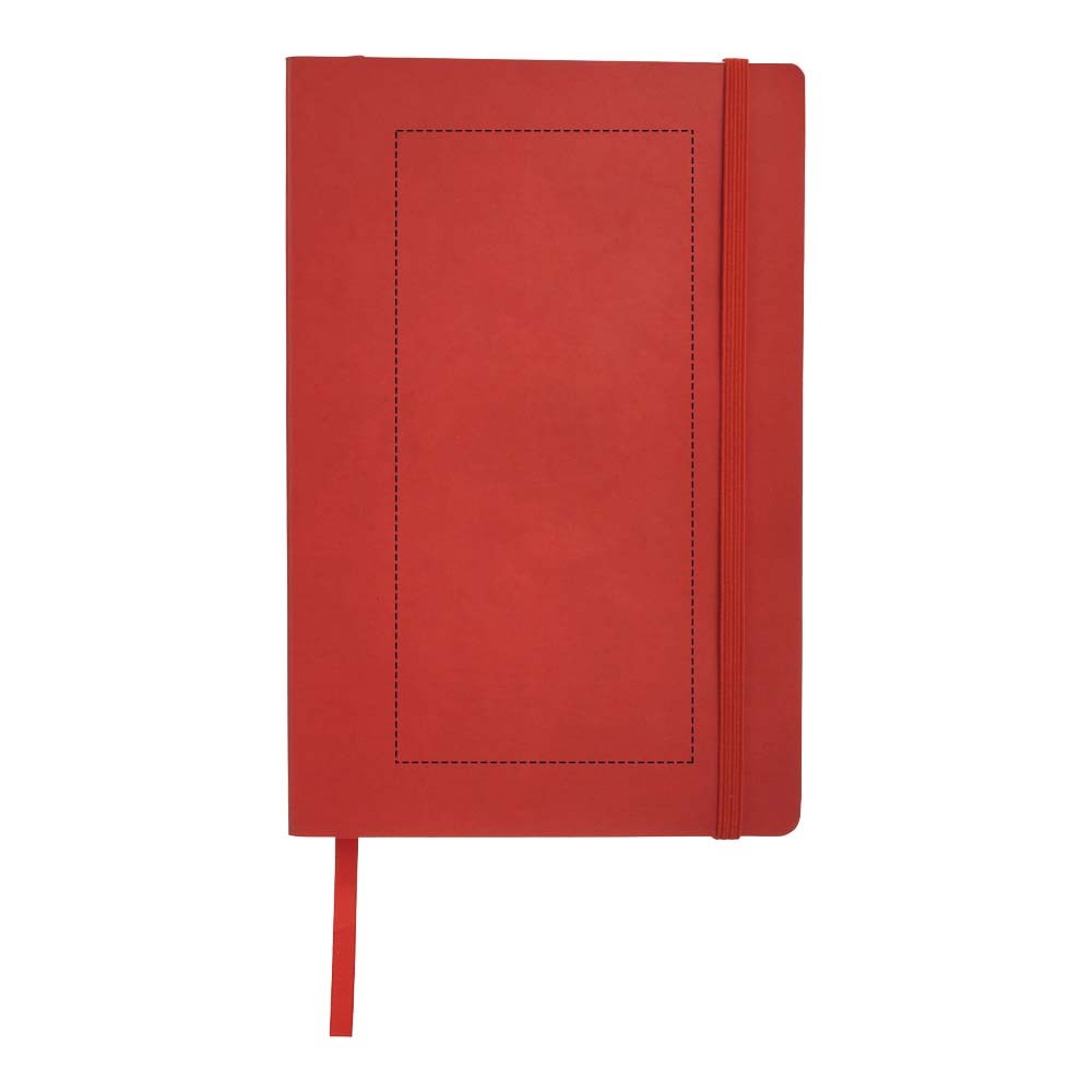 Soft touch cover notebook A5 formaat met ingebouwde elastieksluiting, paginalint, opbergvak aan de binnenkant en 80 pagina's van 80 gram gelineerd papier.