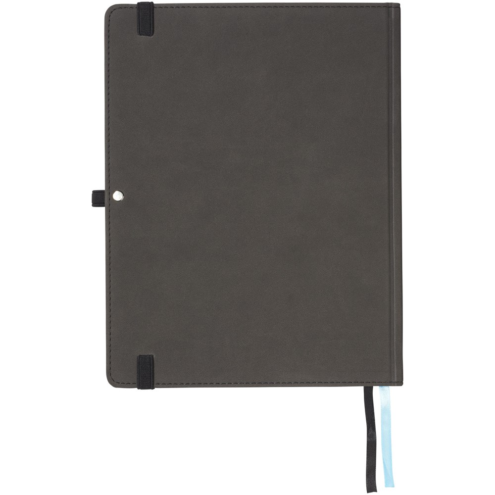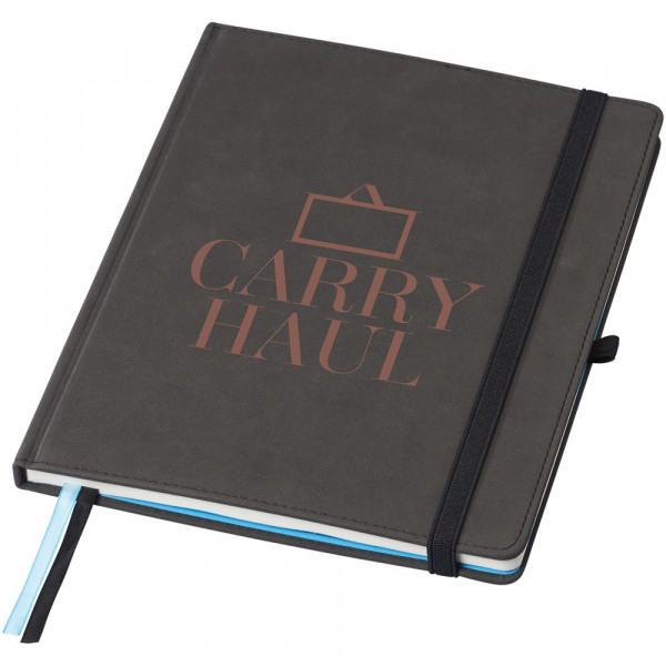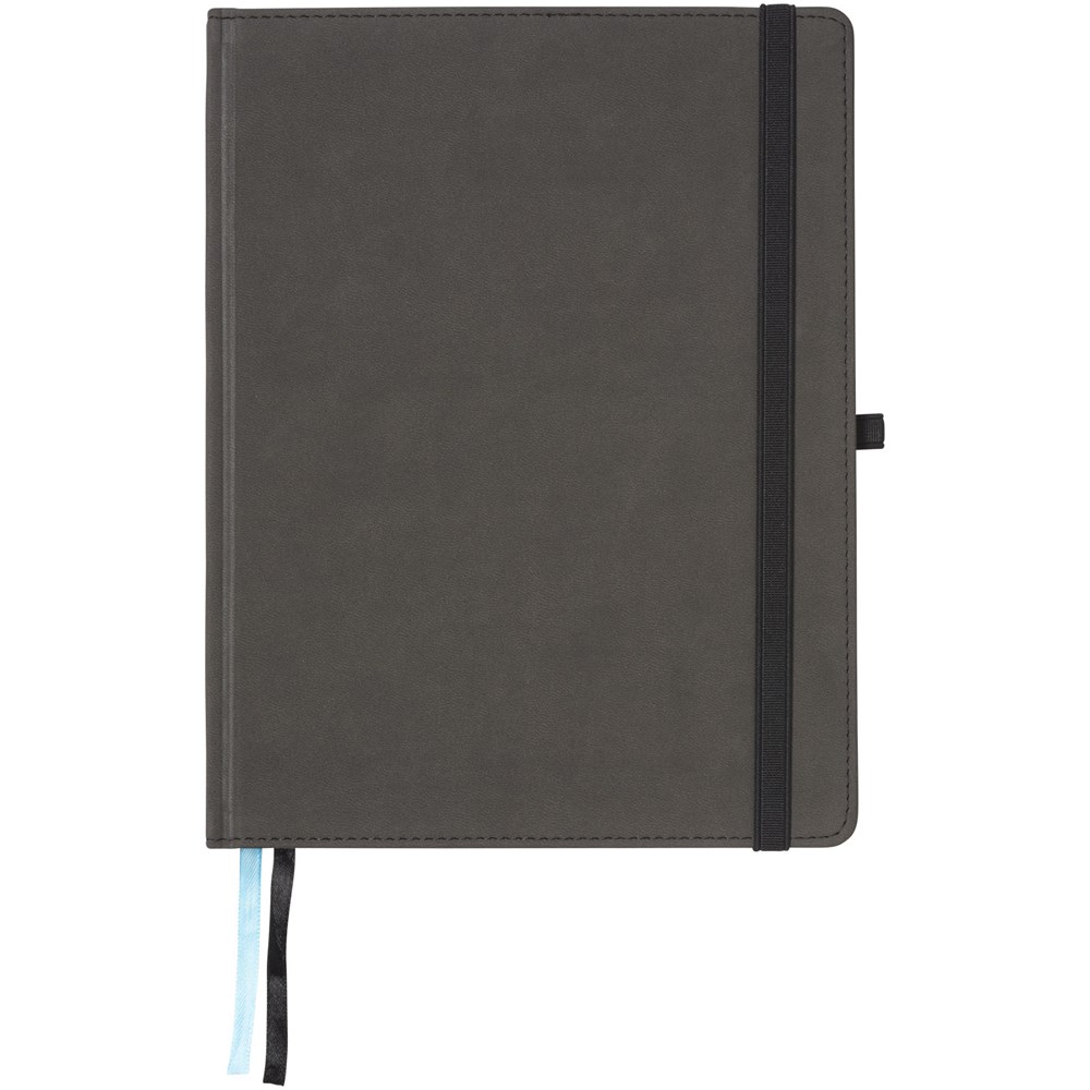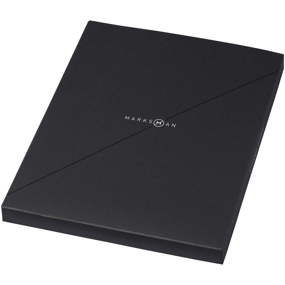 Tablet B5 formaat notitieboekje met soft cover en elastieksluiting, penlus en twee paginalinten. Bevat ook twee blauwe notitiecovers om belangrijke pagina's te markeren. 80 pagina's van 80 gram blanco papier voor het nemen van korte notities en opbergvak aan de binnenkant notities te bewaren. Geleverd in een zwarte geschenkverpakking.