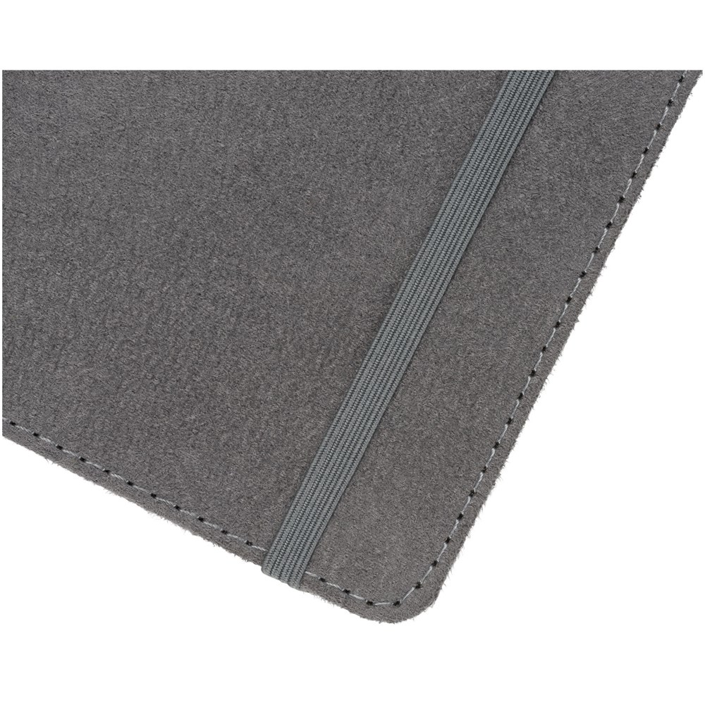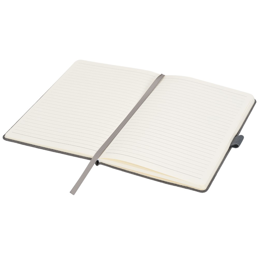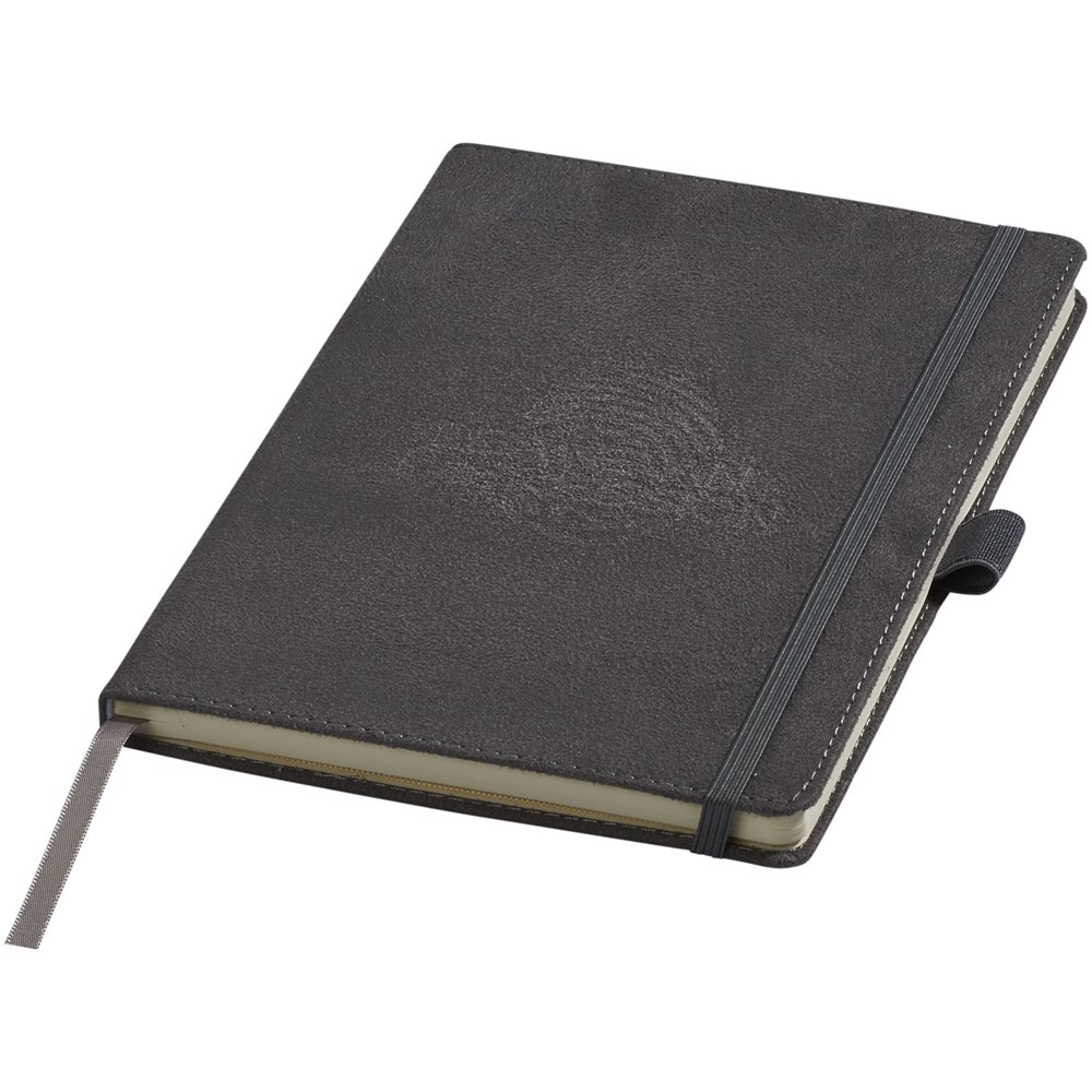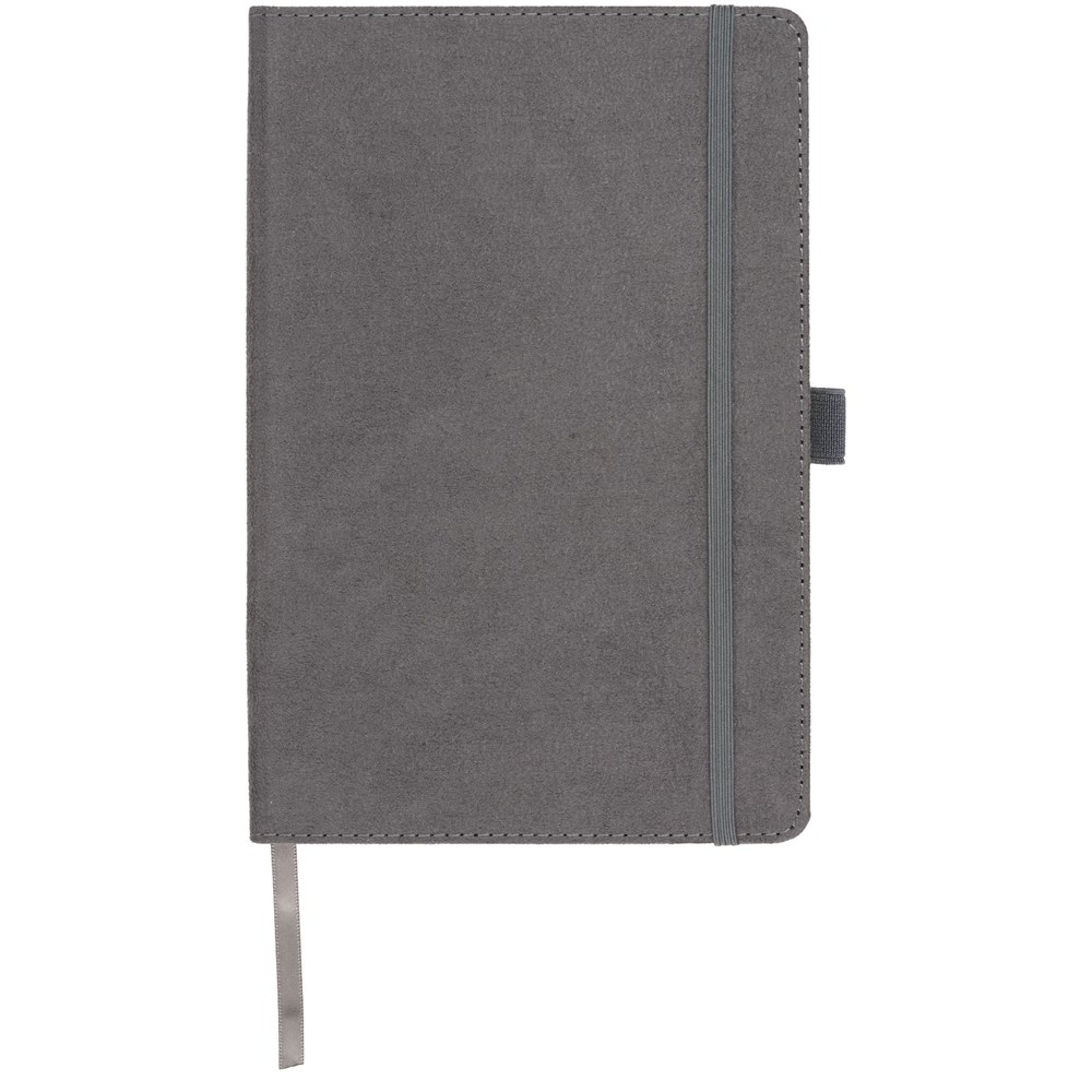 A5 formaat suède notitieboek met harde kaft, elastische sluiting in bijpassende kleur, lintmarker en penlus. 80 g/m2, 80 vellen crèmekleurig lijntjespapier. Heeft tevens een uitbreidbaar vakje aan de achterkant voor kleine notitieblaadjes. Verpakt in een zwarte geschenkverpakking.