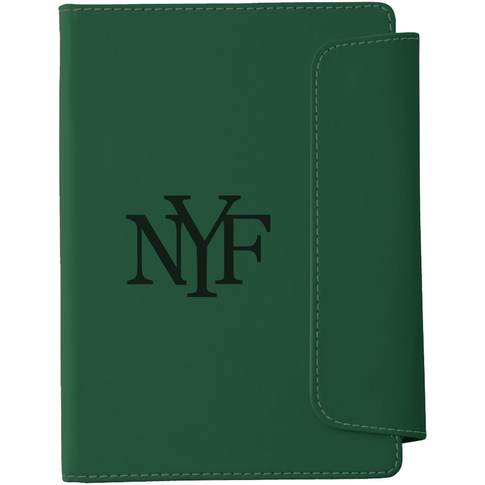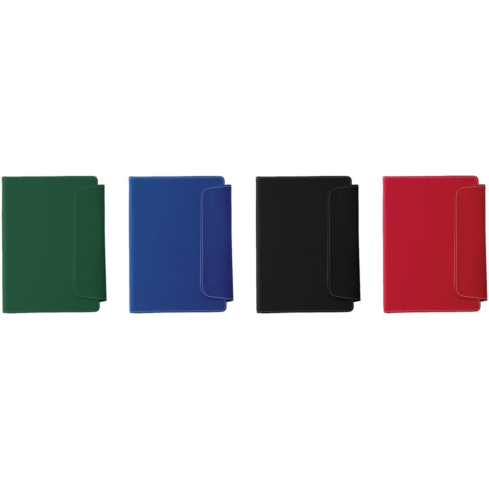 Ingebonden A5 formaat notitieboek met magneetsluiting. Met kunststof stylus balpen en 80 pagina's van 70 gram gelinieerd papier.