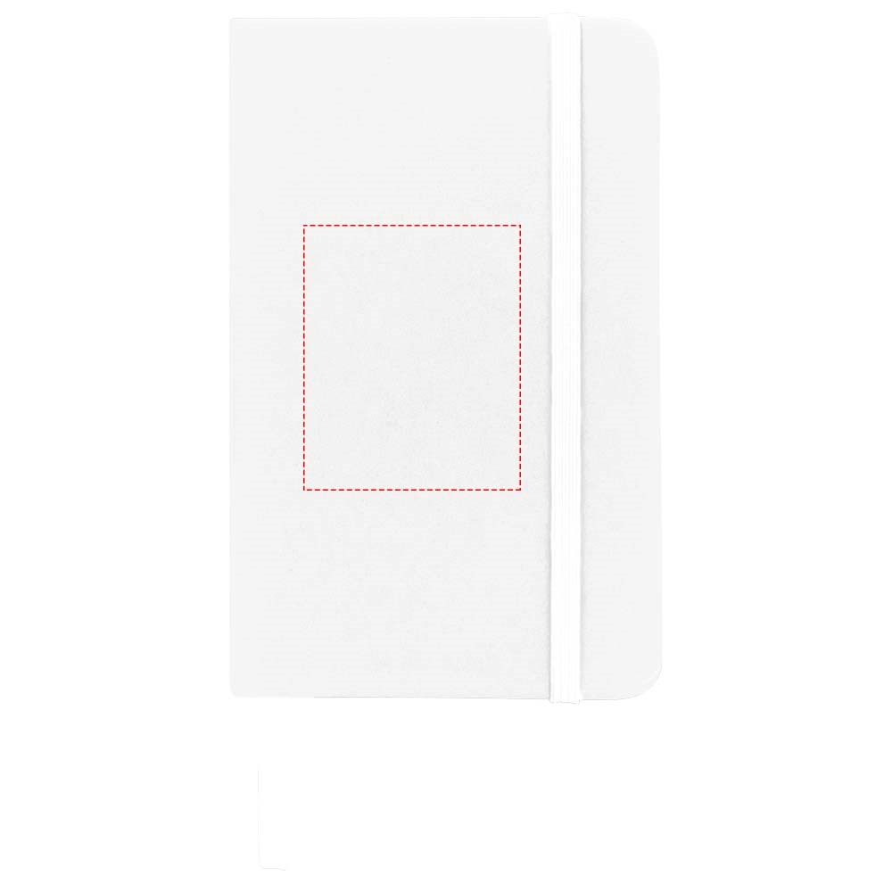 Een A6-notitieboek met bijpassend(e) elastische sluitband en lint. Bevat 96 vellen lijntjespapier (60g/m2). Pagina's niet helder wit.