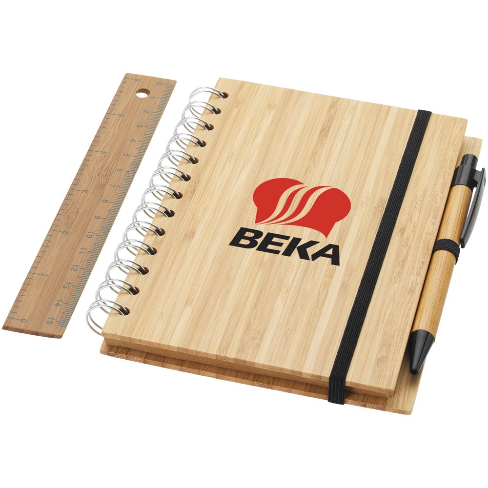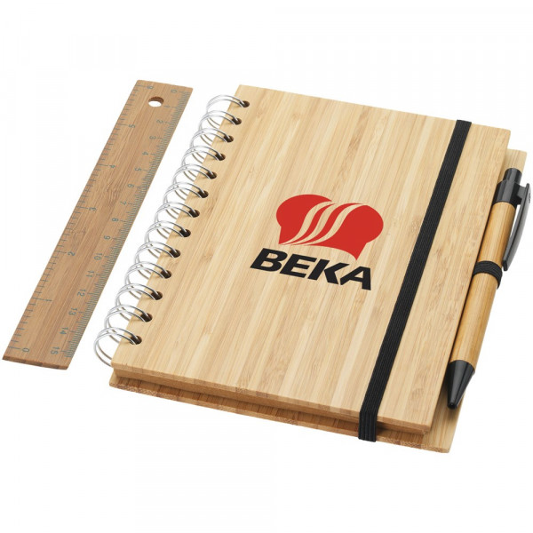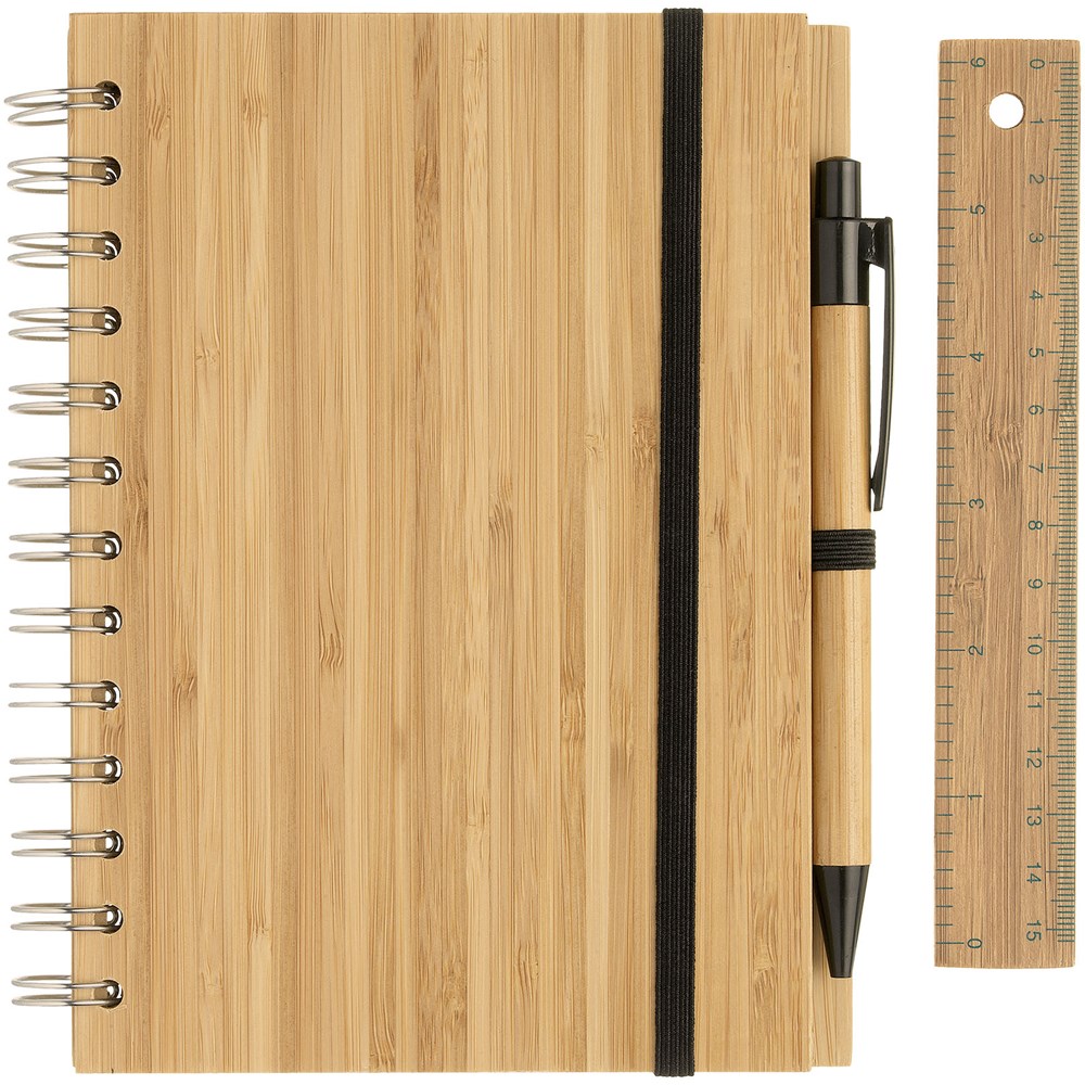 Franklin B6 bamboe notitieboekset met pen en liniaal