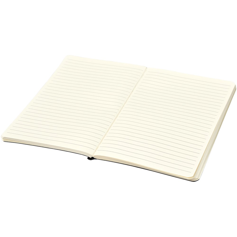 Het notitieboek weerspiegelt een verscheidenheid aan kleuren, afhankelijk van het licht. De kaft van het notitieboek (12,7 cm x 17,78 cm) is gemaakt van PU en heeft 80 vellen gelinieerd crèmepapier in 70 g/m2.