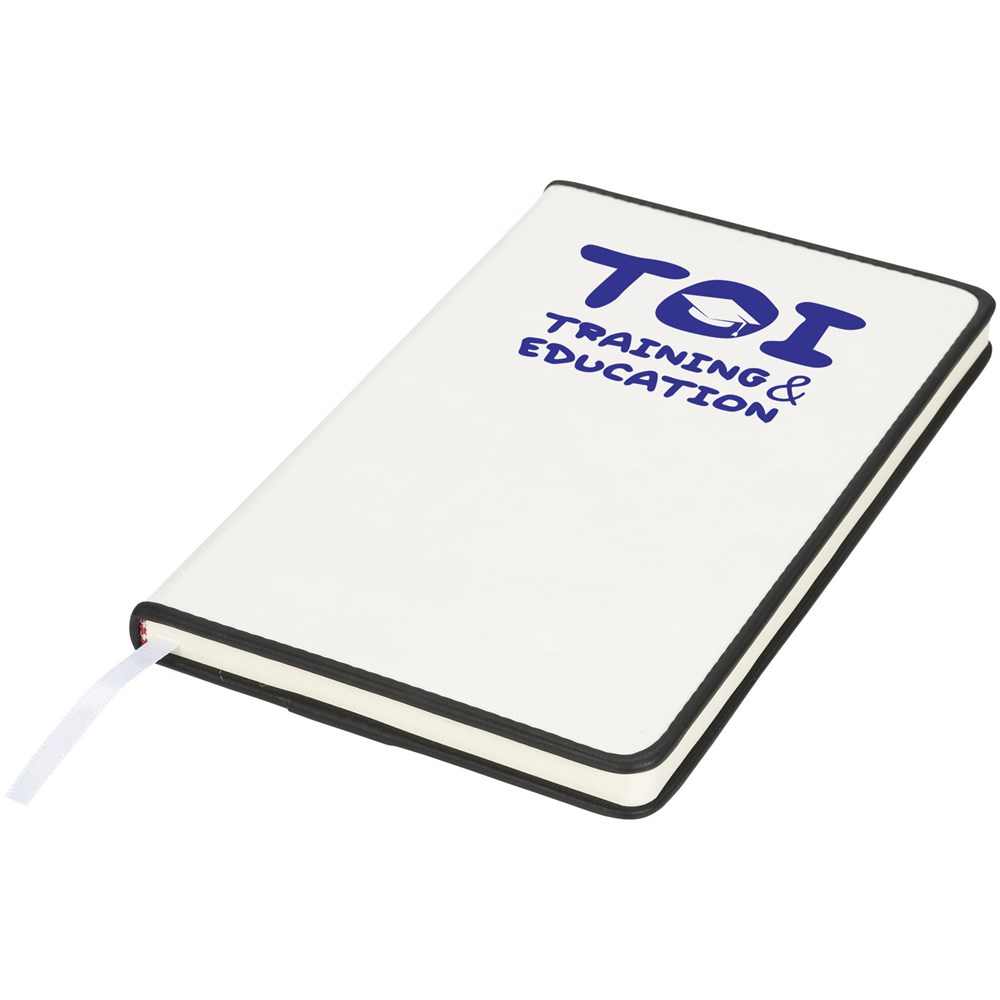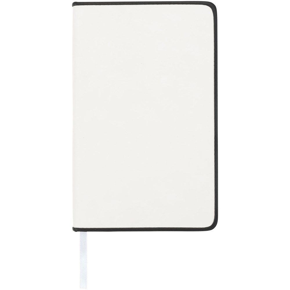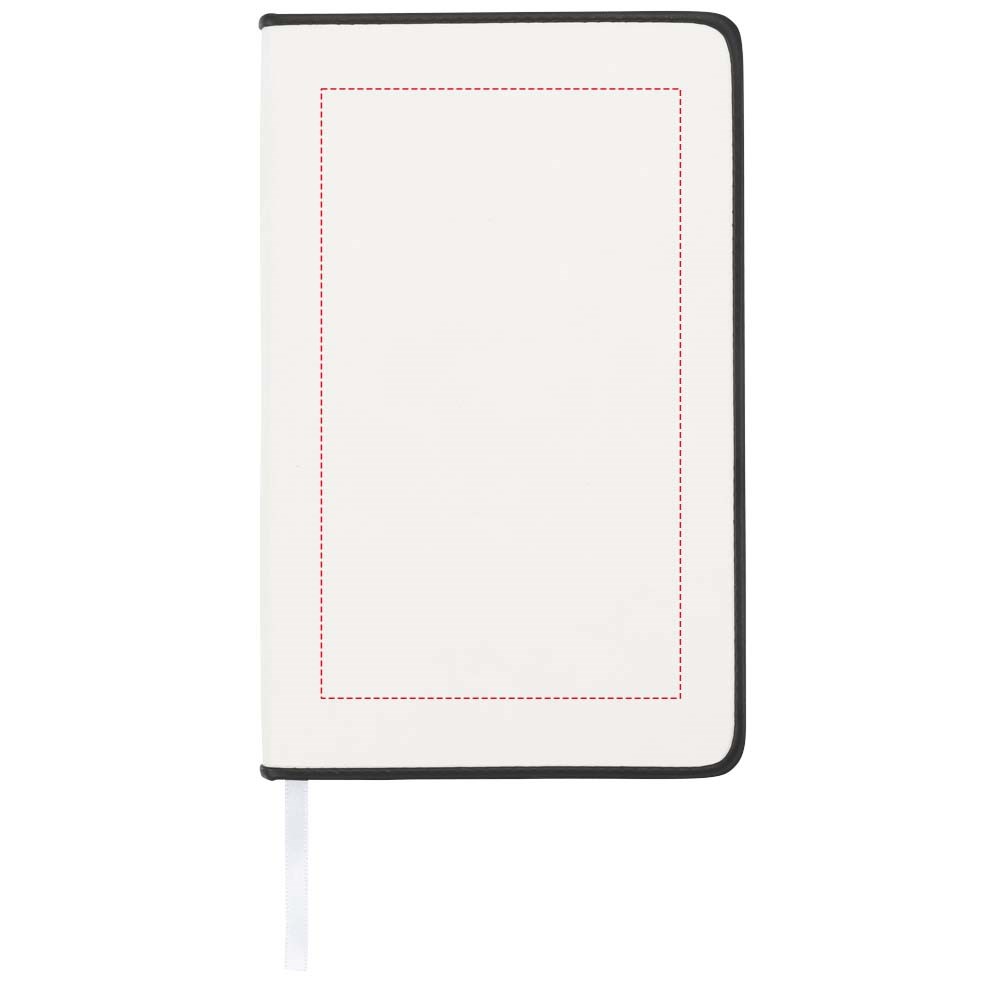Notitieboek met een tijdloze look en uitstraling, verkrijgbaar in vier kleuren. Gladde hardback omslag met een zachte zwarte rand van PU. Bevat 96 bladen (70g/m2) crèmekleurig gelinieerd papier.