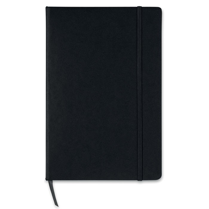 A5 notitieboek, 96 vel met ruitjes papier. Met bijpassend gekleurd lint en elastieke sluiting.