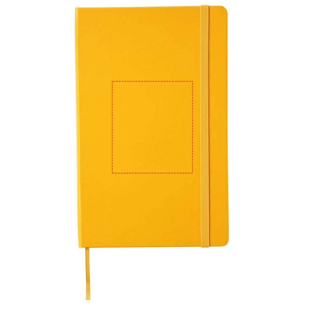 De Moleskine Classic large (13 x 21 cm) is voorzien van een harde omslag van gebonden karton met afgeronde hoeken, zuurvrij papier, een bladwijzer en een elastische sluiting. De eerste pagina biedt ruimte voor persoonsgegevens en het noteren van een beloning die de eerlijke vinder in geval van verlies ontvangt. Aan de achteromslag bevindt zich aan uitbreidbaar binnenvak met daarin de geschiedenis van Moleskine. Dit vak kan worden gebruikt voor losse papieren en notities. Bevat 240 ivoorkleurige gelinieerde pagina's. Pagina's zijn ook verkrijgbaar met stippen, ruitjes en in effen. Verkrijgbaar in diverse stijlvolle, levendige kleuren.