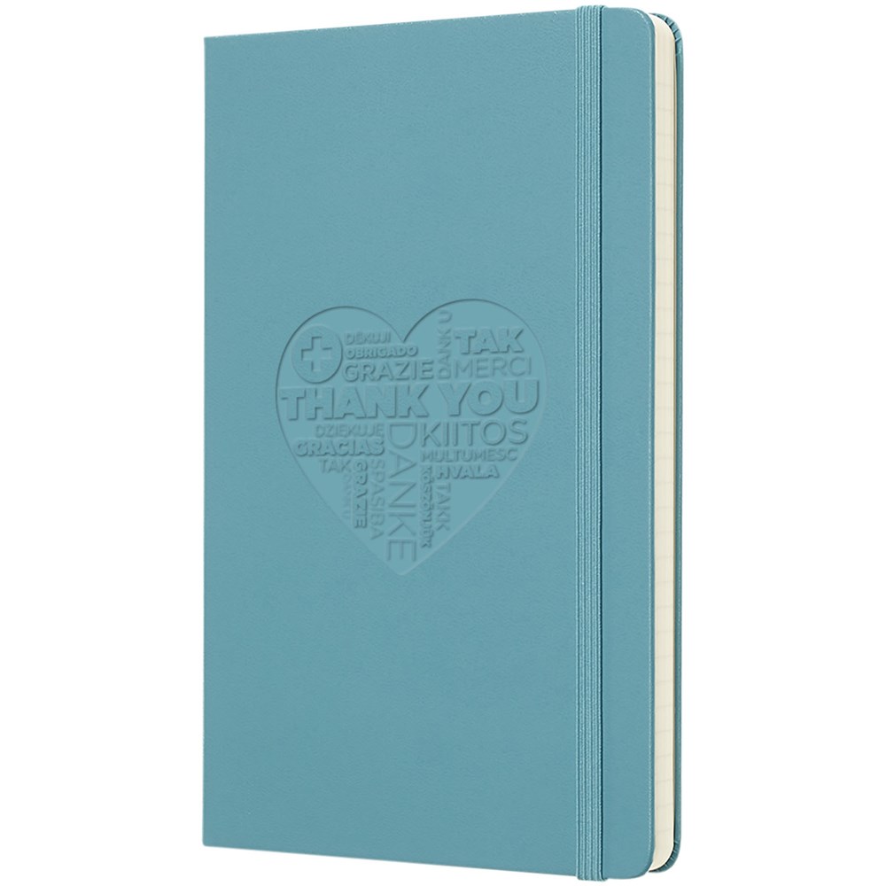De Moleskine Classic large (13 x 21 cm) is voorzien van een harde omslag van gebonden karton met afgeronde hoeken, zuurvrij papier, een bladwijzer en een elastische sluiting. De eerste pagina biedt ruimte voor persoonsgegevens en het noteren van een beloning die de eerlijke vinder in geval van verlies ontvangt. Aan de achteromslag bevindt zich aan uitbreidbaar binnenvak met daarin de geschiedenis van Moleskine. Dit vak kan worden gebruikt voor losse papieren en notities. Bevat 240 ivoorkleurige gelinieerde pagina's. Pagina's zijn ook verkrijgbaar met stippen, ruitjes en in effen. Verkrijgbaar in diverse stijlvolle, levendige kleuren.