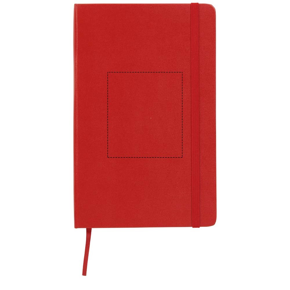 De Moleskine Classic large (13 x 21 cm) is voorzien van een harde omslag van gebonden karton met afgeronde hoeken, zuurvrij papier, een bladwijzer en een elastische sluiting. De eerste pagina biedt ruimte voor persoonsgegevens en het noteren van een beloning die de eerlijke vinder in geval van verlies ontvangt. Aan de achteromslag bevindt zich aan uitbreidbaar binnenvak met daarin de geschiedenis van Moleskine. Dit vak kan worden gebruikt voor losse papieren en notities. Bevat 240 ivoorkleurige gelinieerde pagina's. Pagina's zijn ook verkrijgbaar met stippen, ruitjes en in effen. Verkrijgbaar in diverse stijlvolle, levendige kleuren.