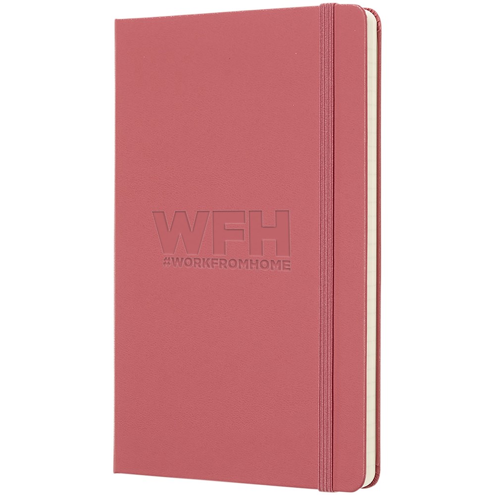 De Moleskine Classic large (13 x 21 cm) is voorzien van een harde omslag van gebonden karton met afgeronde hoeken, zuurvrij papier, een bladwijzer en een elastische sluiting. De eerste pagina biedt ruimte voor persoonsgegevens en het noteren van een beloning die de eerlijke vinder in geval van verlies ontvangt. Aan de achteromslag bevindt zich aan uitbreidbaar binnenvak met daarin de geschiedenis van Moleskine. Dit vak kan worden gebruikt voor losse papieren en notities. Bevat 240 ivoorkleurige gelinieerde pagina's. Pagina's zijn ook verkrijgbaar met stippen, ruitjes en in effen. Verkrijgbaar in diverse stijlvolle, levendige kleuren.
