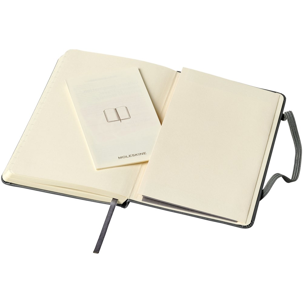 Moleskine Classic hardcover notitieboek in pocketformaat (9 x 14 cm). Verkrijgbaar in diverse stijlvolle, levendige kleuren. Het notitieboek heeft een omslag van gebonden karton met afgeronde hoeken, zuurvrij papier, een bladwijzer en een elastische sluiting. De eerste pagina biedt ruimte voor persoonsgegevens en het noteren van een beloning die de eerlijke vinder in geval van verlies ontvangt. Aan de achteromslag bevindt zich aan uitbreidbaar binnenvak met daarin de geschiedenis van Moleskine. Dit vak kan worden gebruikt voor losse papieren en notities. Bevat 192 ivoorkleurige gelinieerde pagina's. Deze versie is ook verkrijgbaar in effen wit, geruit en gelinieerd papier.