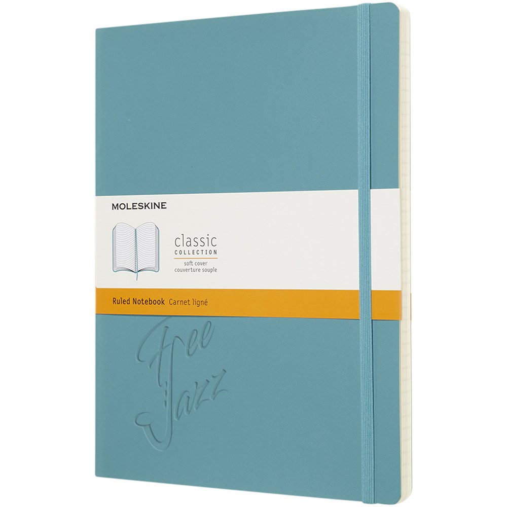 Het Moleskine Classic XL (19 x 25 cm) softcover notitieboek is verkrijgbaar in diverse stijlvolle, levendige kleuren. Het notitieboek heeft een kartonnen zachte omslag met afgeronde hoeken, zuurvrij papier, een bladwijzer en een elastische sluiting. De eerste pagina biedt ruimte voor persoonsgegevens en het noteren van een beloning die de eerlijke vinder ‘in geval van verlies’ ontvangt. Aan de achteromslag bevindt zich aan uitbreidbaar binnenvak met daarin de geschiedenis van Moleskine. Dit vak kan worden gebruikt voor losse papieren en notities. Bevat 192 ivoorkleurige gelinieerde pagina's. Deze versie is ook verkrijgbaar met stippen, ruitjes en in effen.