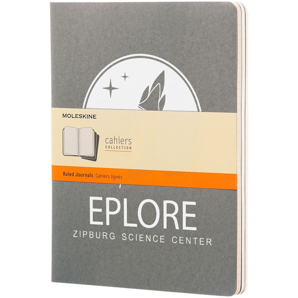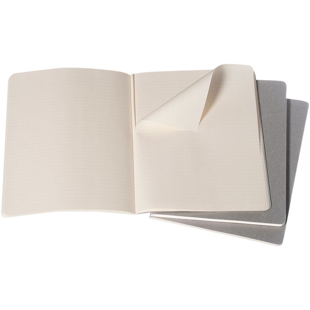 Bevat een kartonnen omslag met afgeronde hoeken. Zichtbare stiksels op de rug, met een flap voor losse notities. Bevat 120 70 gsm ivoorkleurige pagina's met lijntjes. De laatste 16 vellen zijn uitscheurbaar. Pagina's zijn ook verkrijgbaar met stippen, ruitjes en in effen.