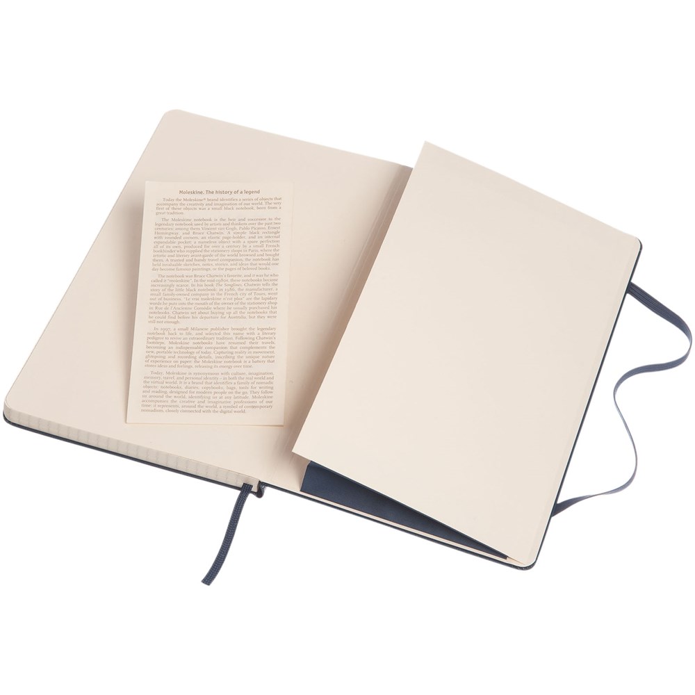 Classic Moleskine groot notitieboek met harde omslag in de populaire kleur zwart, plus een variatie aan stijlvolle levendige kleuren. Met afgeronde hoeken, elastische sluiting en een bladwijzer. Uitbreidbaar kartonnen vak en doek aan de binnenkant van de achterste omslag. Bevat 240 ivoorkleurige pagina's met ruitjes. Pagina's zijn ook verkrijgbaar met ruitjes, stippen en in effen.