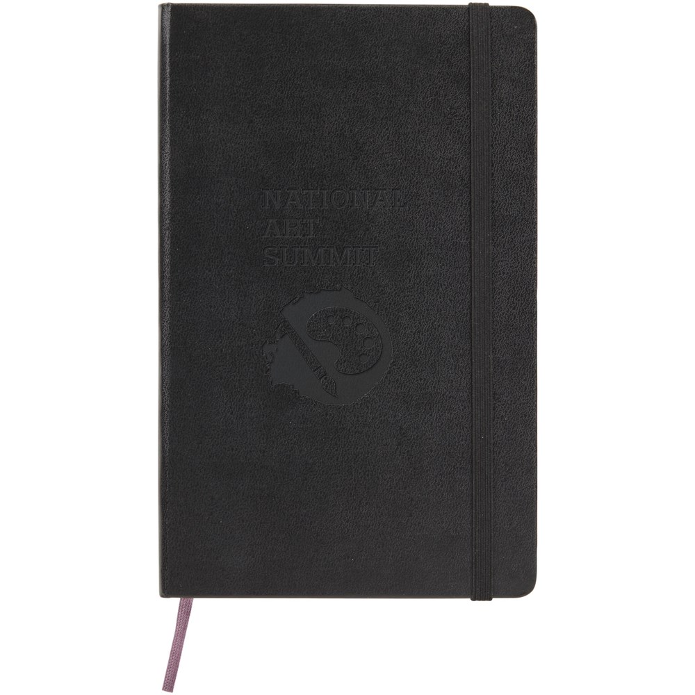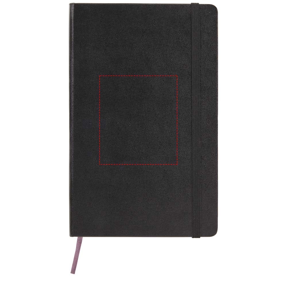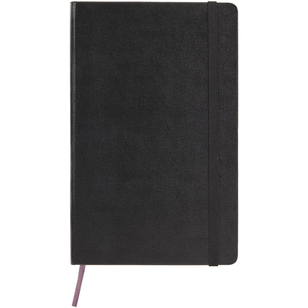 Classic Moleskine groot notitieboek met harde omslag in de populaire kleur zwart, plus een variatie aan stijlvolle levendige kleuren. Met afgeronde hoeken, elastische sluiting en een bladwijzer. Uitbreidbaar kartonnen vak en doek aan de binnenkant van de achterste omslag. Bevat 240 ivoorkleurige gestippelde pagina's. Pagina’s zijn ook verkrijgbaar met lijntjes, ruiten en effen papier.