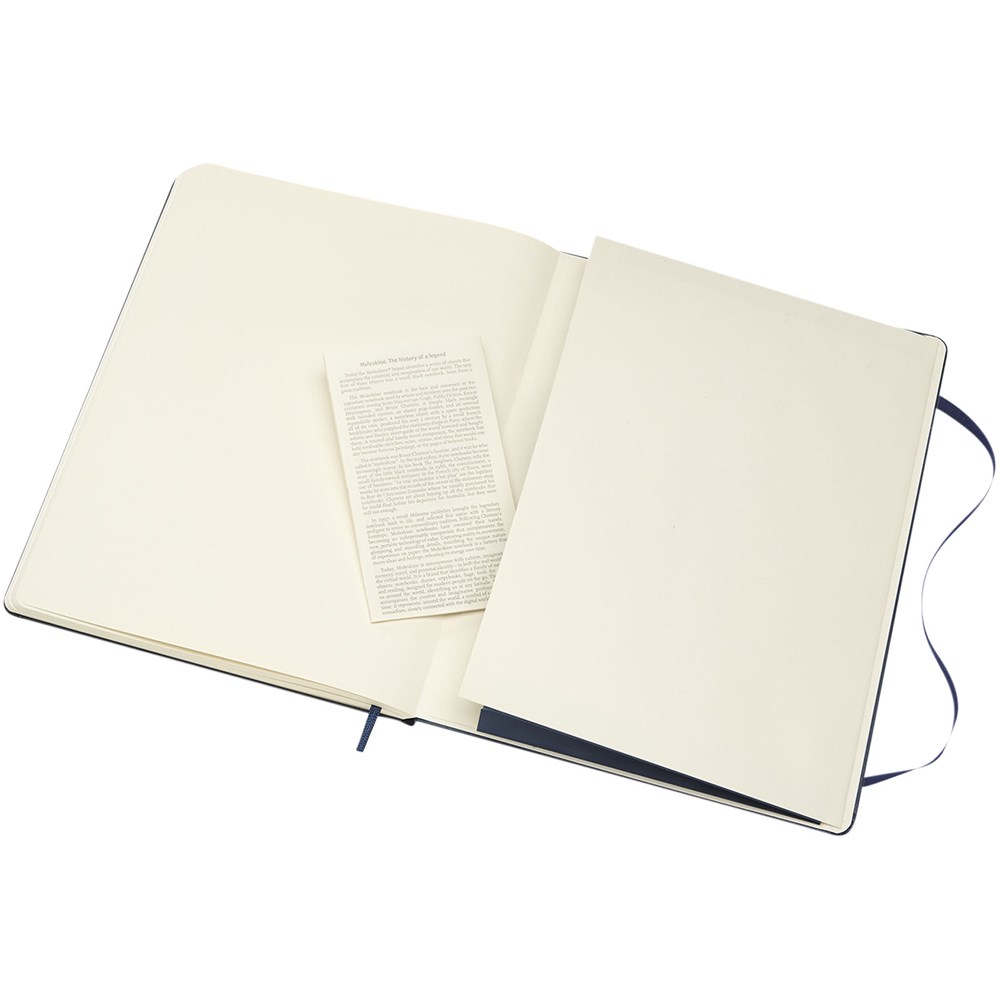 Ons extra grote Classic Moleskine notitieboek heeft de iconische afgeronde hoeken en een harde omslag. Voorzien van een elastische sluiting en een bladwijzer. Uitbreidbaar vakje aan de binnenkant van de achterste omslag. Bevat 192 pagina's ivoorkleurig effen papier. Pagina's zijn ook verkrijgbaar met lijntjes, stippen en ruitjes.
