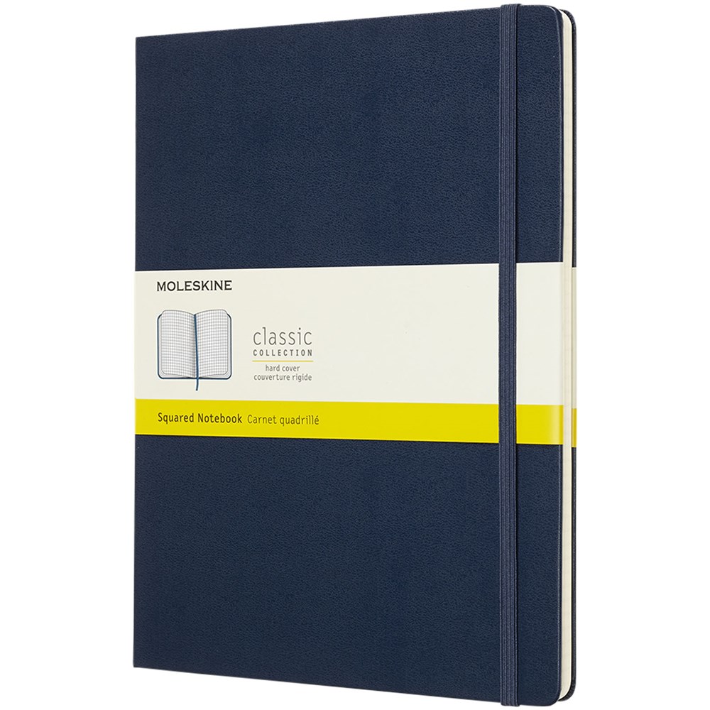 Het extra grote Classic Moleskine notitieboek heeft de iconische afgeronde hoeken en een harde omslag. Voorzien van een elastische sluiting en een bladwijzer. Uitbreidbaar vakje aan de binnenkant van de achterste omslag. Bevat 192 pagina's ivoorkleurig geruit papier. Pagina's zijn ook verkrijgbaar met ruitjes, stippen en in effen.