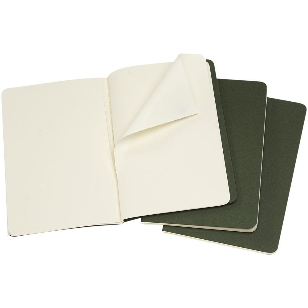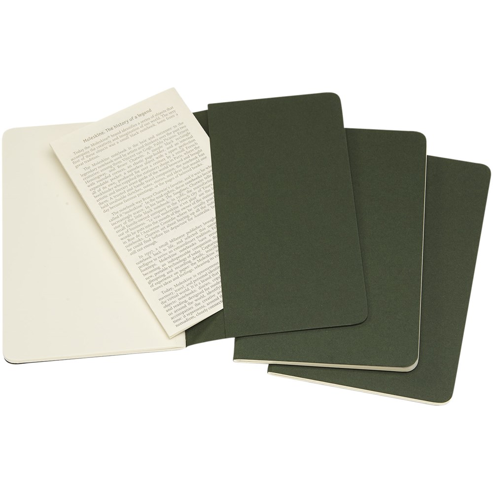 Bevat een kartonnen omslag met afgeronde hoeken. Zichtbare stiksels op de rug, met een flap voor losse notities. Bevat 64 70 gsm ivoorkleurige effen pagina's. De laatste 16 vellen zijn uitscheurbaar. Pagina's zijn ook verkrijgbaar met lijntjes, stippen en ruitjes.