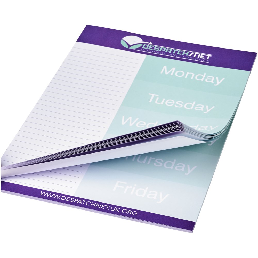Wit A4 Desk-Mate® kladblok. Bevat vellen blanco papier van 80 g/m2. Standaard geleverd met 50 vellen, ook verkrijgbaar met 25 of 100 vellen. Decoratie mogelijk op elk blad. Afmetingen blad: 210x297mm.