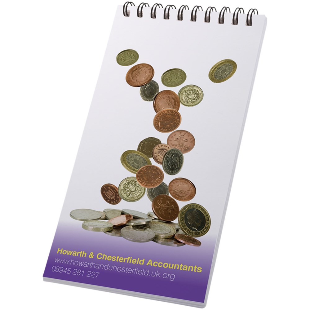 Desk-Mate® spiraal A4 notitieboek. Dit notitieboek heeft een witte of zwarte spiraal. Bevat een omslag van glanskarton (250g/m2) en 50 bladen (80g/m2) blanco papier. Decoratie mogelijk op de omslag en op elk blad.