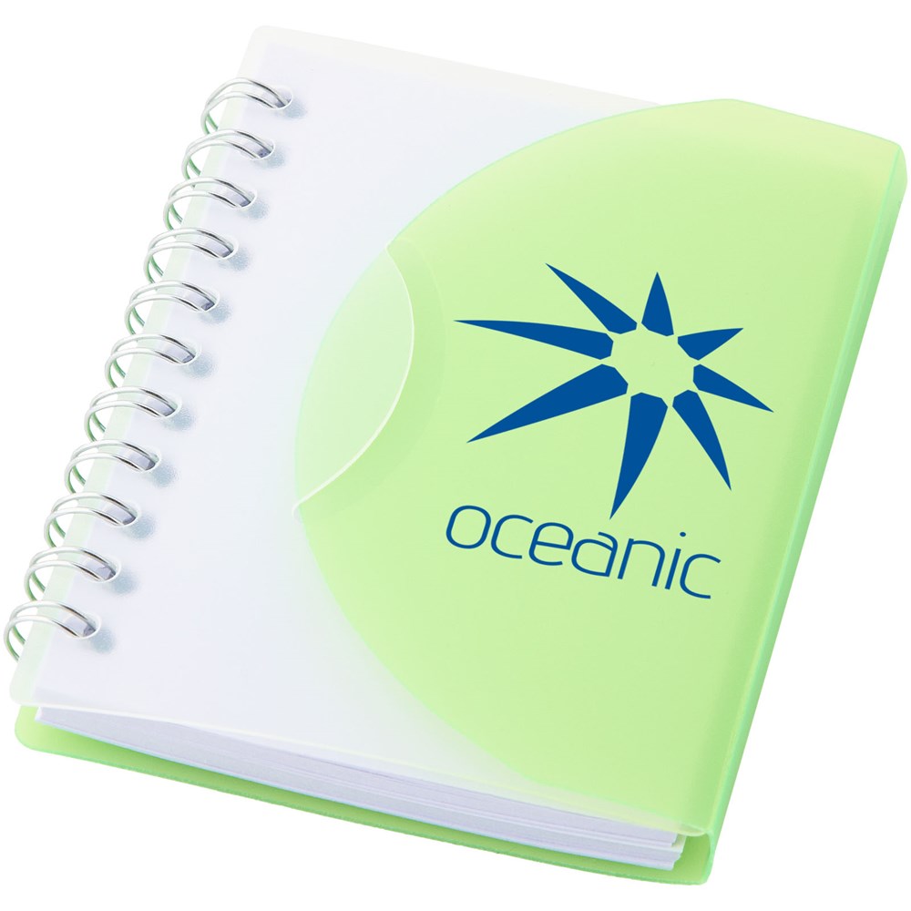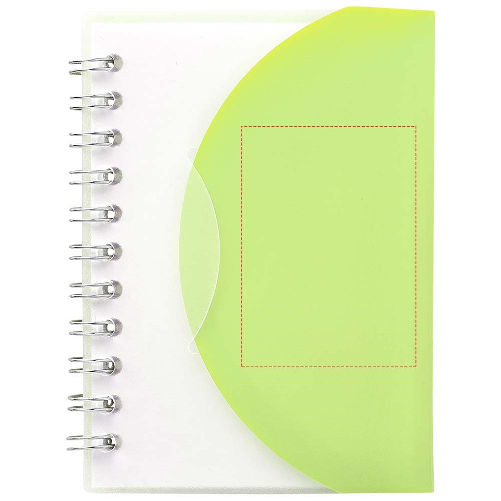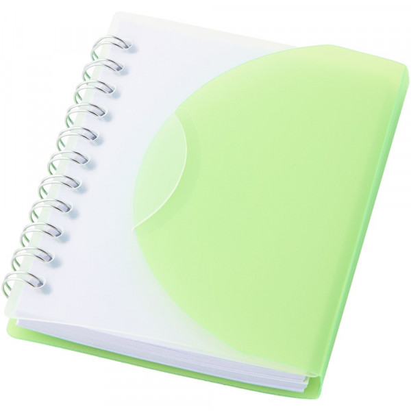 A7 fromaat notitieboek met vouwflap en 60 pagina's ongelinieerd papier.