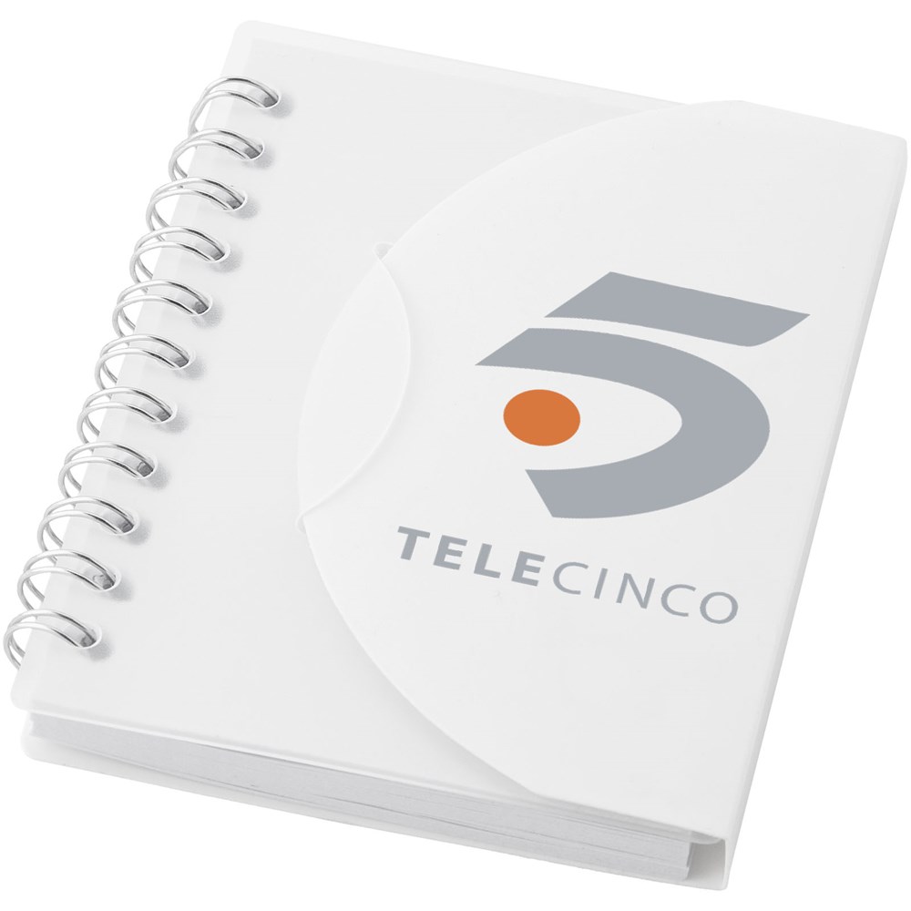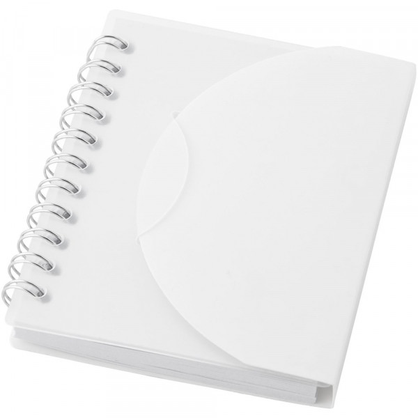 A7 fromaat notitieboek met vouwflap en 60 pagina's ongelinieerd papier.