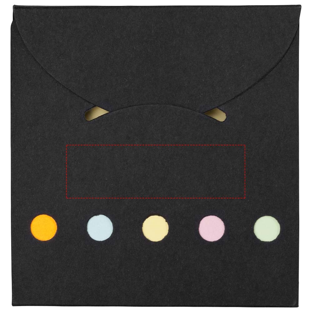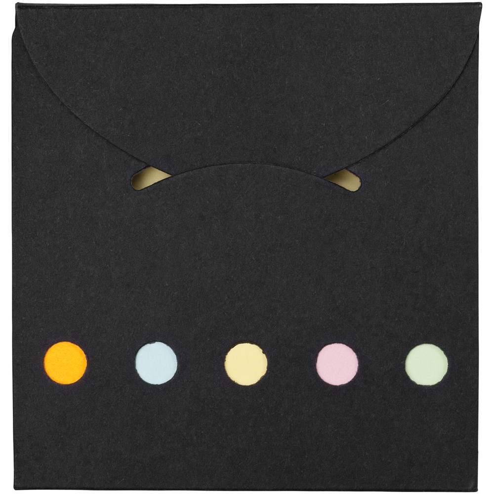 Set van grote sticky notes in geel (7,5 x 7,5 cm) en kleine sticky notes in meerdere kleuren (5 x 1,5 cm).