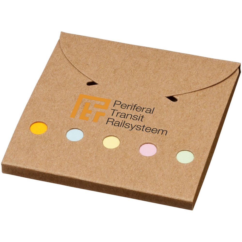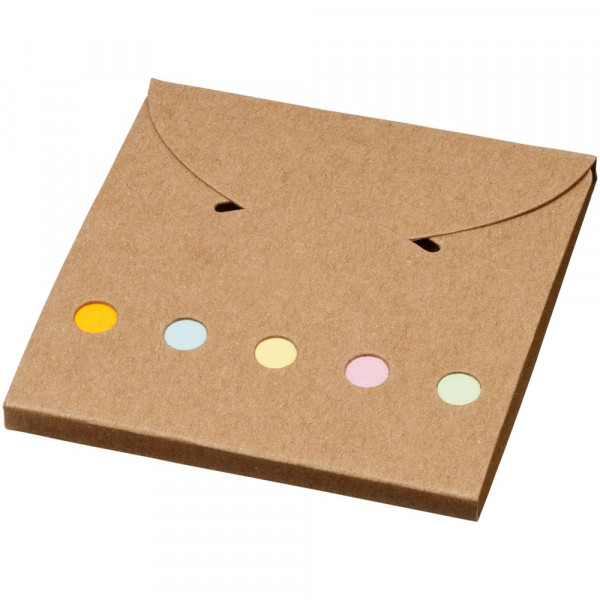 Set van grote sticky notes in geel (7,5 x 7,5 cm) en kleine sticky notes in meerdere kleuren (5 x 1,5 cm).