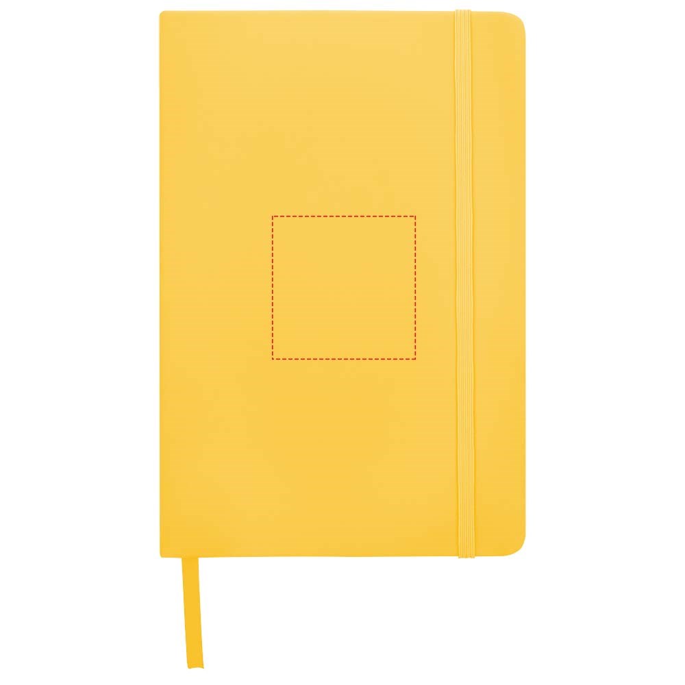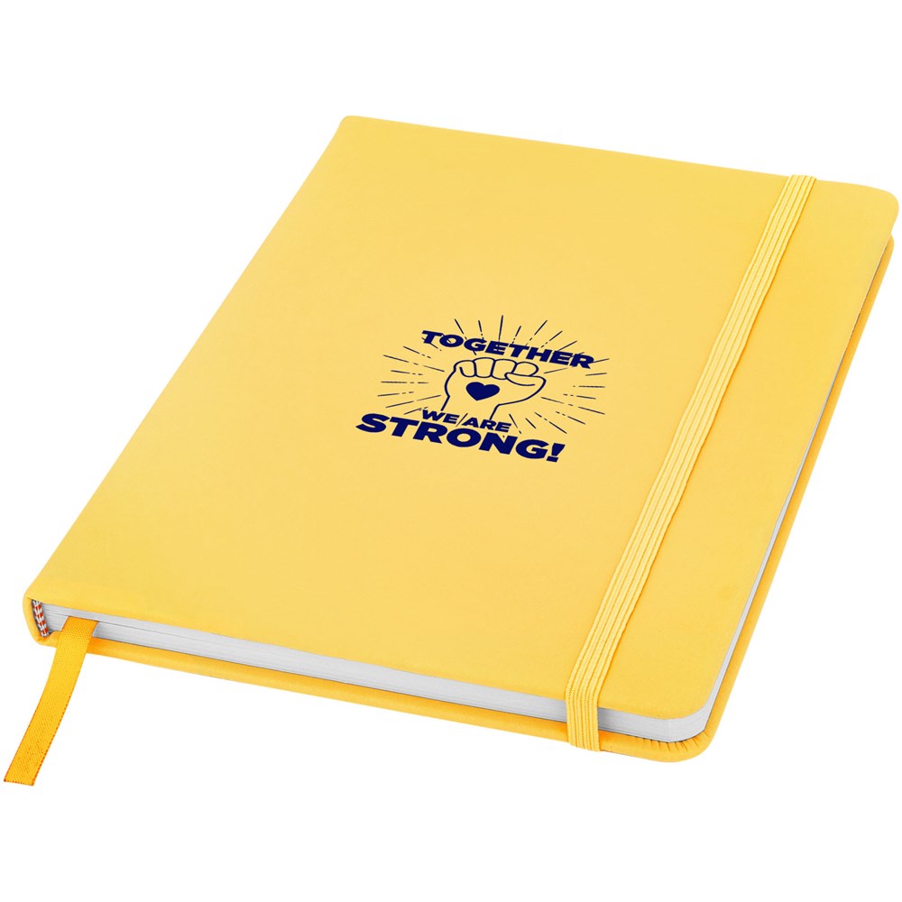 A5 formaat notitieboek met bijpassende gekleurde elastieksluiting en paginalint. 96 pagina's van 60g/m2 gelinieerd papier. Pagina's niet helder wit.