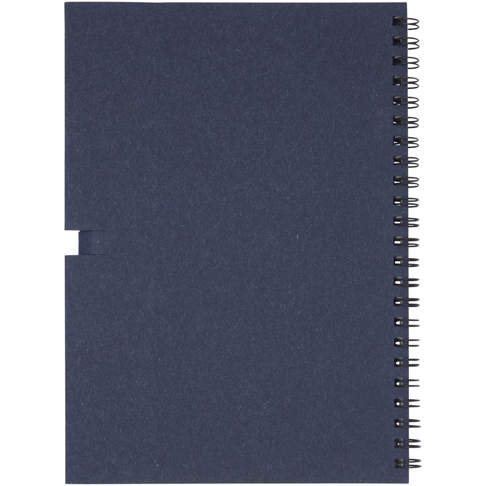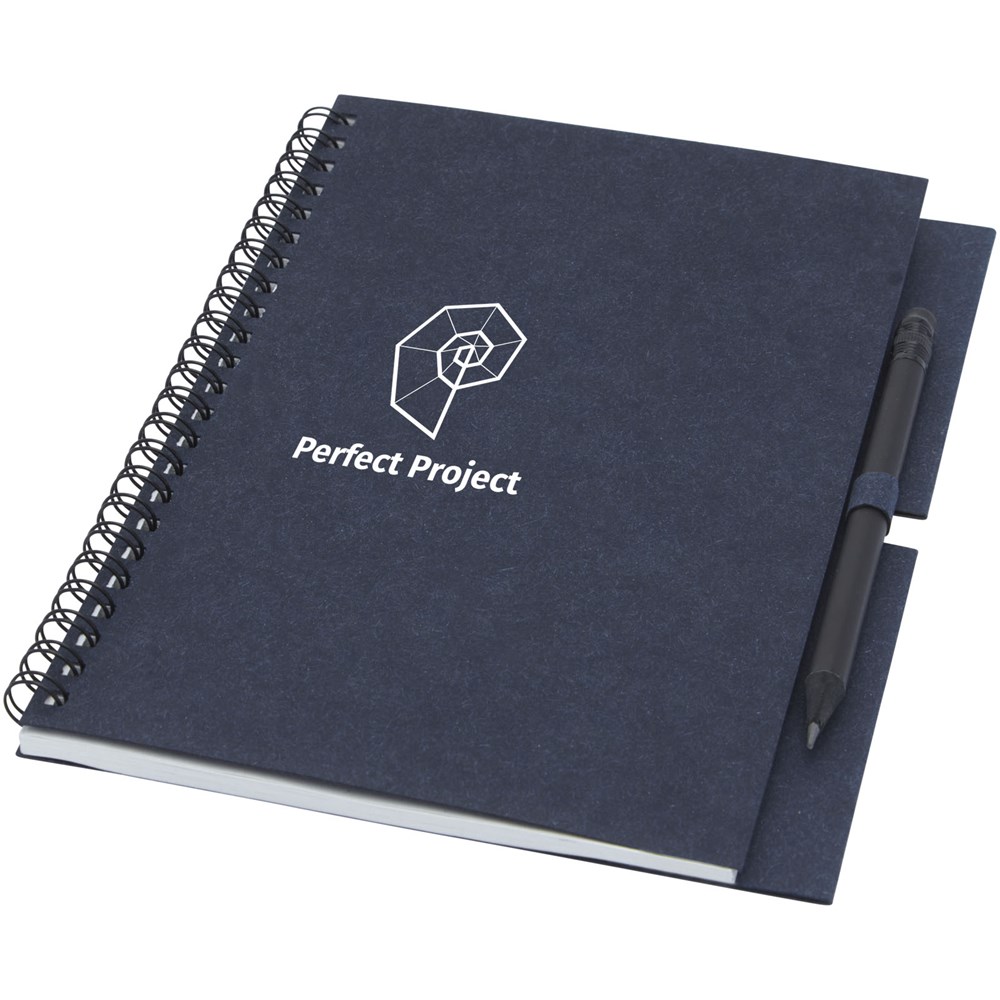 Gerecycled wire-O notitieboek met papieren kaft met 40 vellen, 80 g/m² blanco FSC gerecycled papier, en een zwart potlood. Het notitieboekje is gemaakt in Italië.