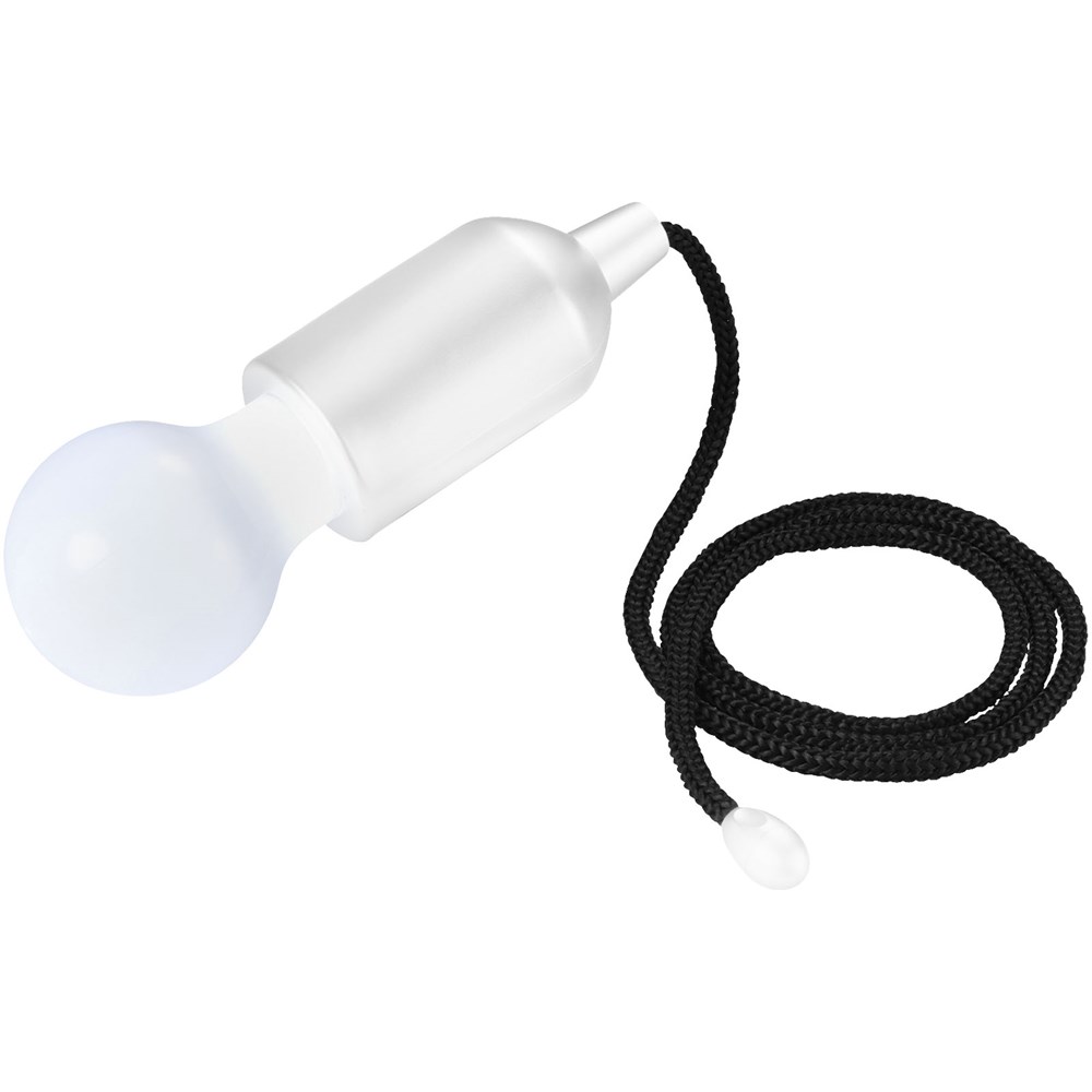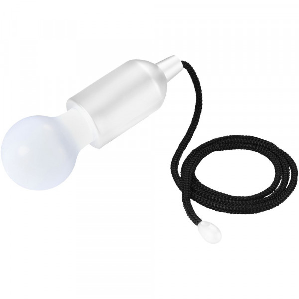 Peervormige witte LED lamp met een aan-/uit trekschakelaar. Licht waar en wanneer je maar wilt – in de garage, in de tent, in een kast, in het huis en buitenshuis. Incl. 3 AAA-batterijen.