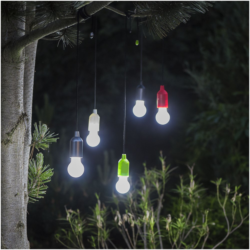 Peervormige witte LED lamp met een aan-/uit trekschakelaar. Licht waar en wanneer je maar wilt – in de garage, in de tent, in een kast, in het huis en buitenshuis. Incl. 3 AAA-batterijen.