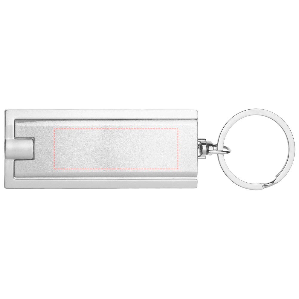 Sleutelhanger met helder wit LED-lampje met drukknop. Metalen sleutelring. Inclusief batterijen.