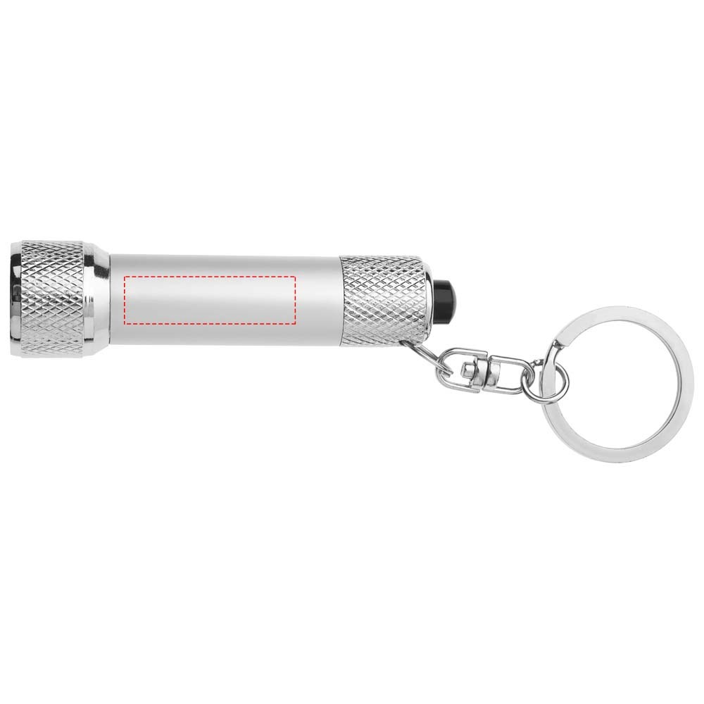 Sleutelhangerlampje met 5 helder witte LED's en aan-/uitknop. Metalen sleutelring. Inclusief batterijen.