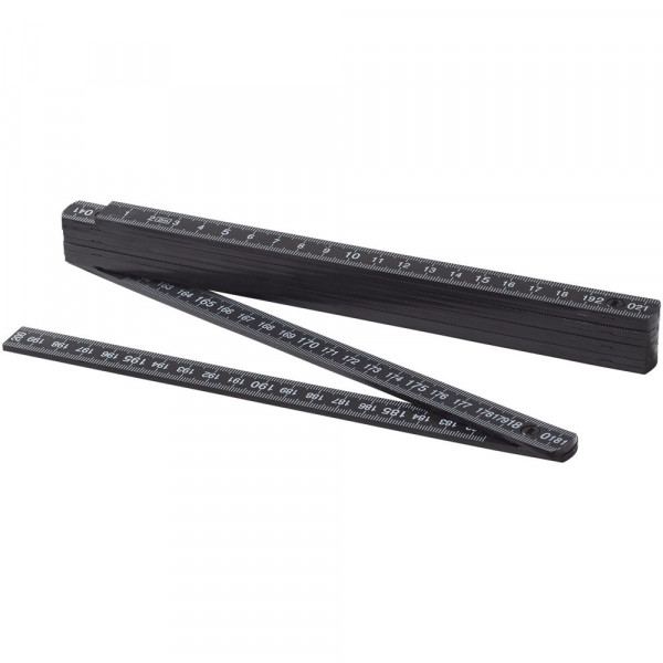 Dubbelzijdige, opvouwbare liniaal met metalen sleutelhanger. Op de ene kant 50 cm en op de andere kant 20 inches. Niet geschikt voor professioneel gebruik en geijkte toepassingen.