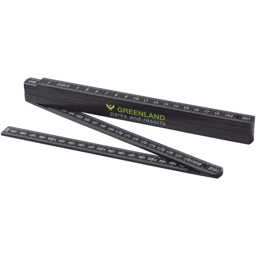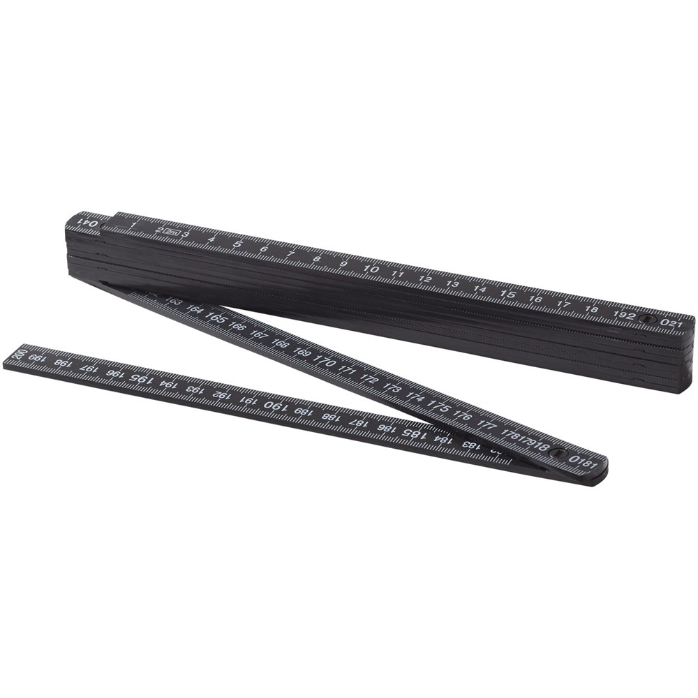 Dubbelzijdige, opvouwbare liniaal met metalen sleutelhanger. Op de ene kant 50 cm en op de andere...meer