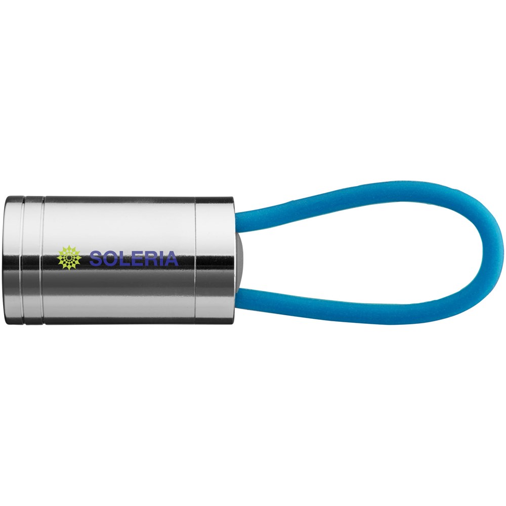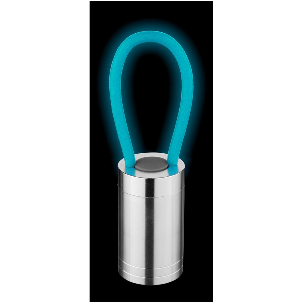 Zaklamp met 6 witte leds en bijpassend glow in the dark siliconen bandje en aan/uit knop op de achterkant. Batterijen inbegrepen.