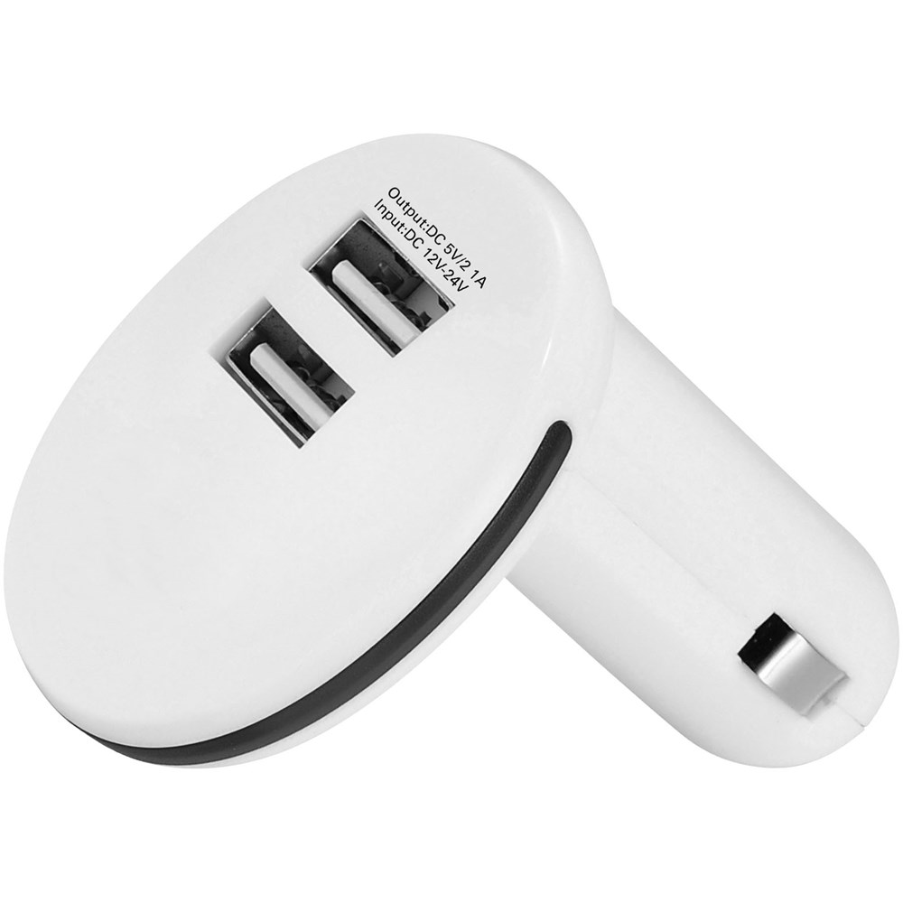 Deze adapter heeft een dubbele poort en een LED-ring met wit licht. Geschikt voor smartphones en andere persoonlijke apparaten die worden opgeladen met een USB-kabel, zoals iPad® en andere tablets. Input: 12-24 Volt. Twee USB-poorten (5V/1 Amp & 2,1 Amp), max. output: 2,1 Amp. USB-kabel niet inbegrepen.