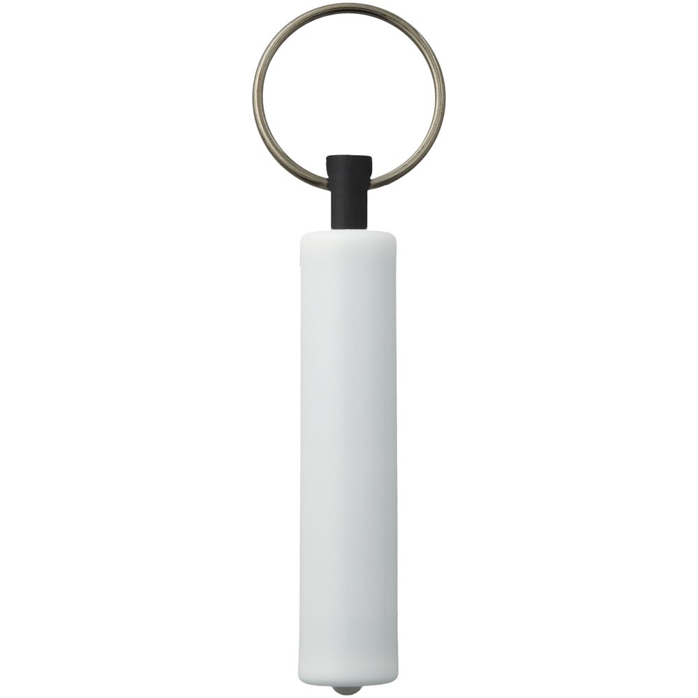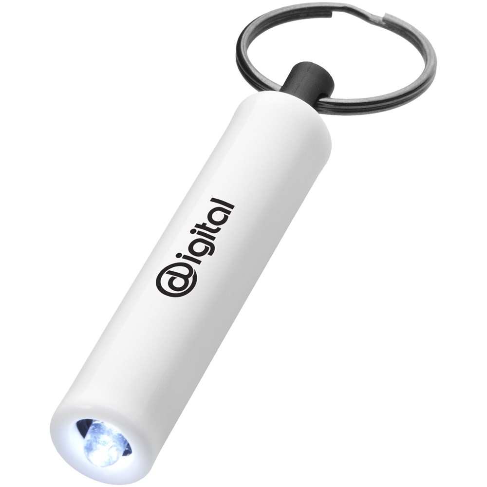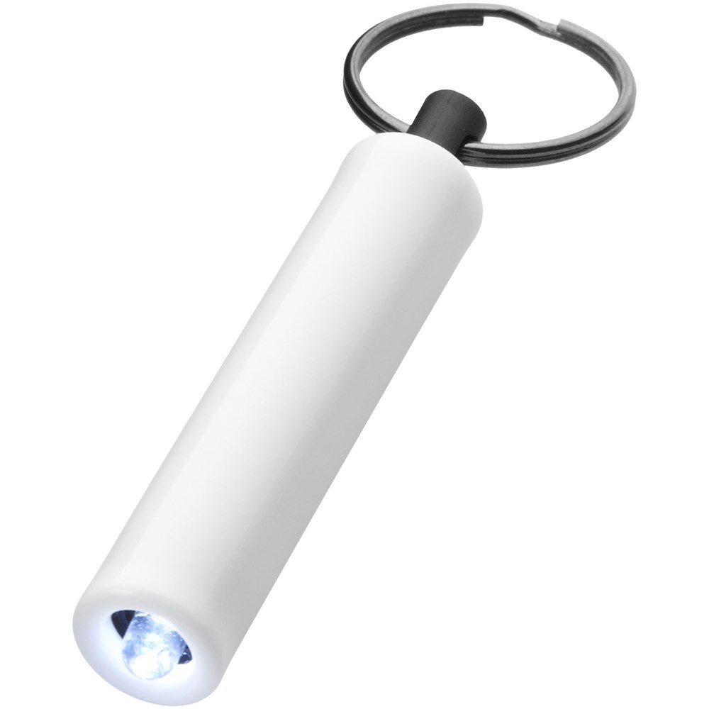 Sleutelhanger met enkelvoudig wit LED-licht. Metalen sleutelring. drukknop aan de achterkant....meer