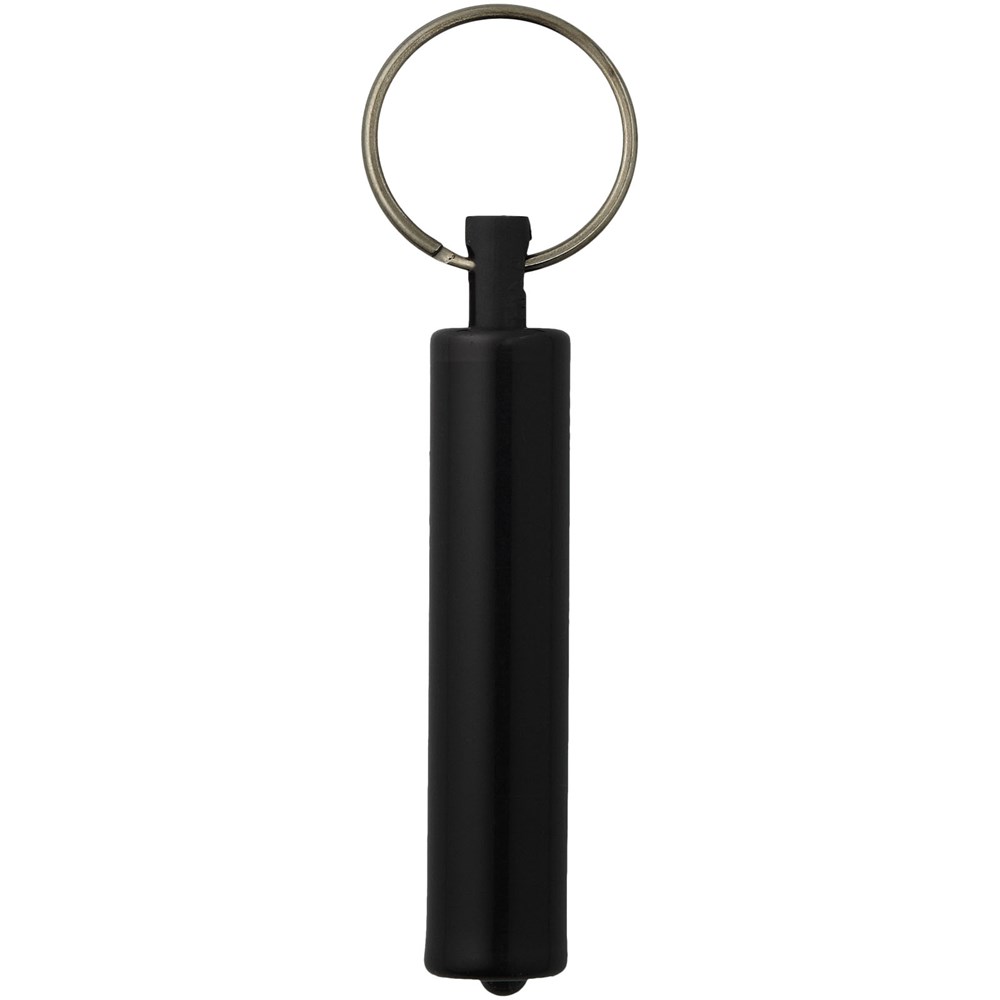Sleutelhanger met enkelvoudig wit LED-licht. Metalen sleutelring. drukknop aan de achterkant....meer