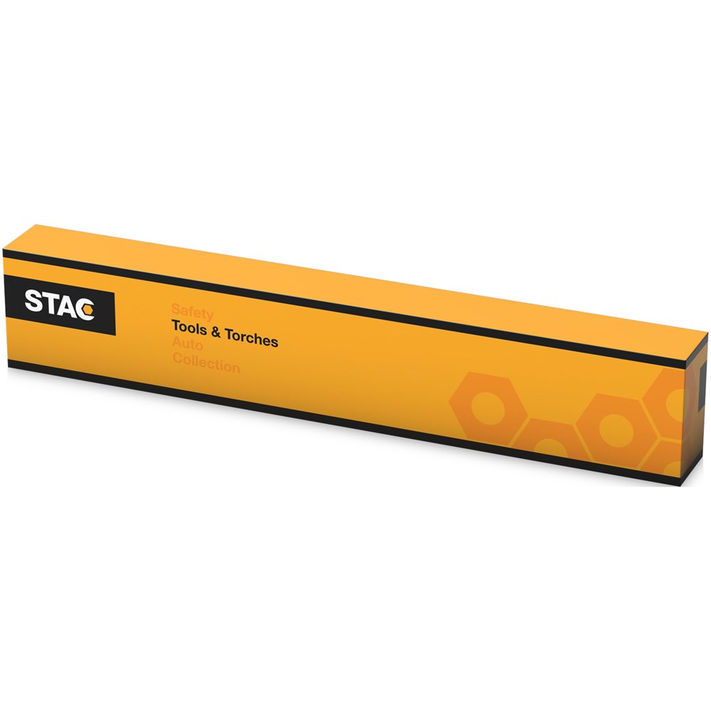 Slanke, magnetische zaklantaarn met 3 lichtstanden - 4 LED knipperlicht, 24 LED normaal licht en combinatie van beide. Magnetische achterzijde voor bevestiging op metalen oppervlakken, Aan-/uitdrukknop. Nylon draagriempje. Incl. batterijen. Geleverd in een STAC geschenkverpakking. Exclusief ontwerp.